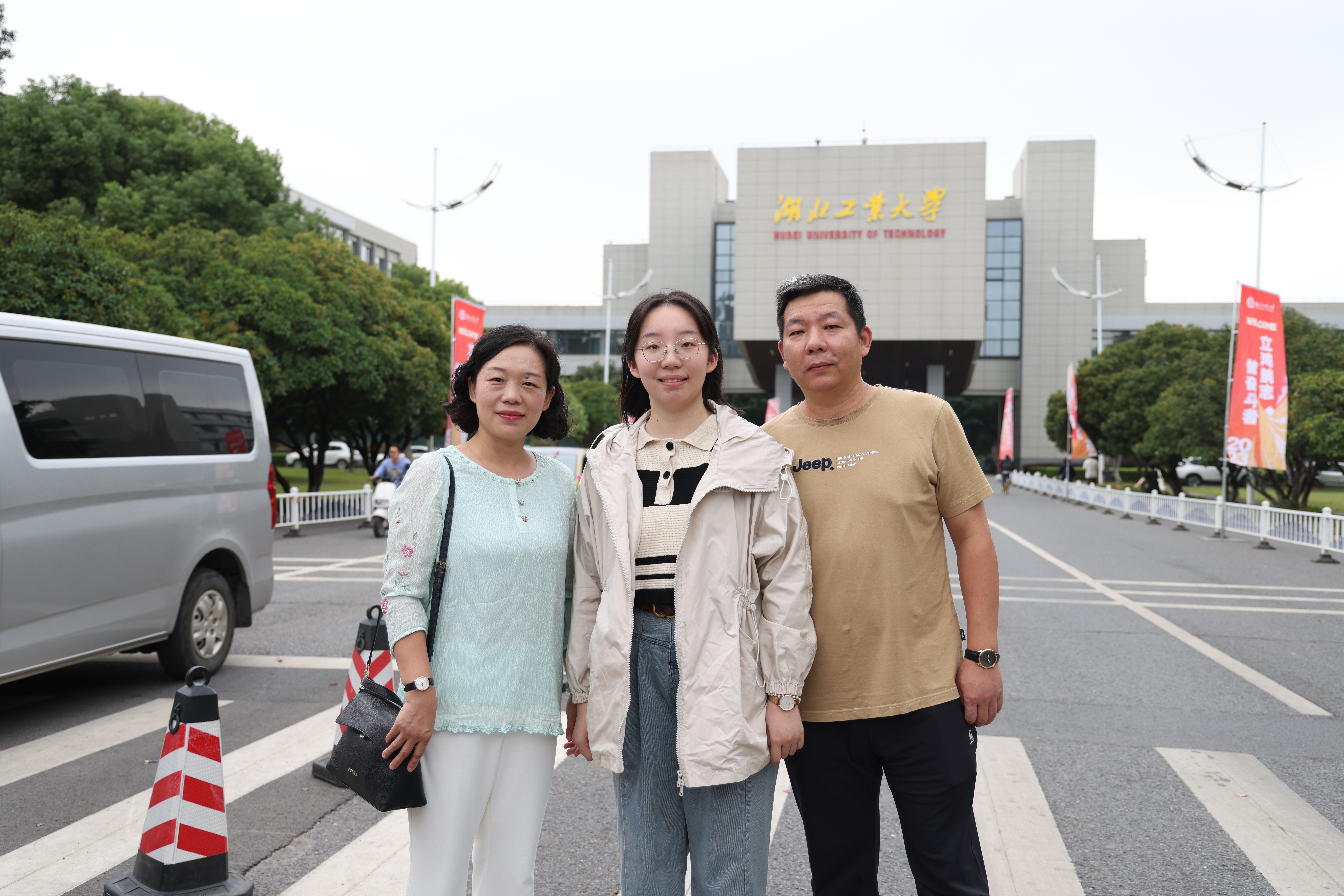 湖北工业大学本科新生报到日,吴桦煊(中)和爸妈在校园合影。史凡 摄