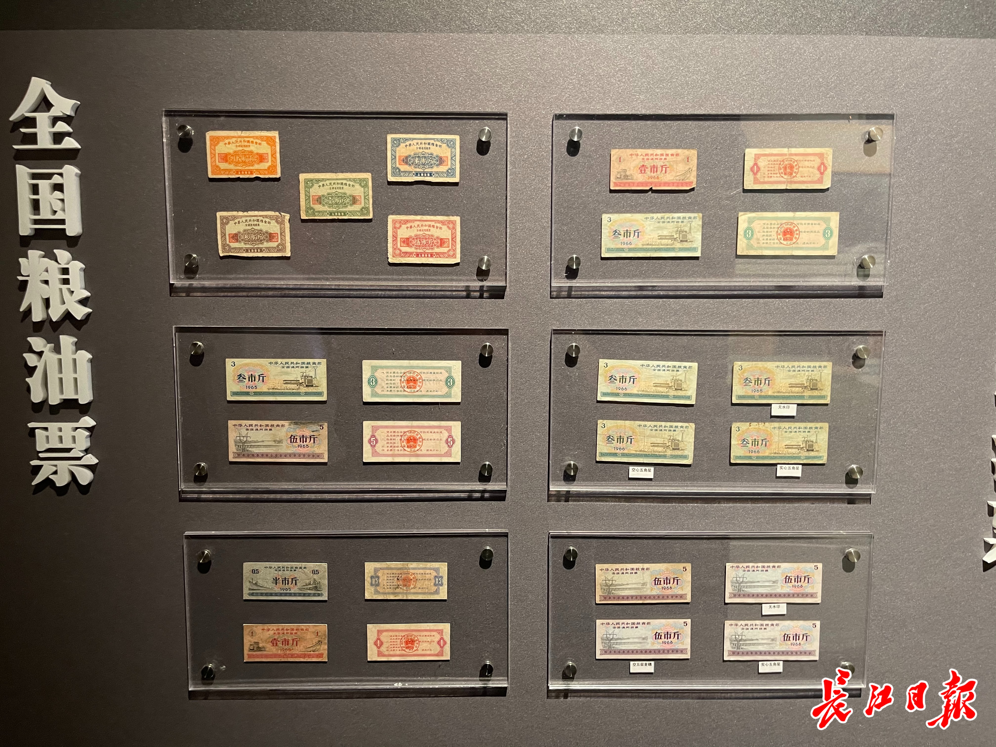 博物馆内还展出了新中国成立后的第一批粮油面票。其中,北京1993年500克面票、上海1966年四两油票、陕西1972年三市两油票、宜昌1984年二市两油票等这些小小的粮油面票,见证了中国社会的变迁和物资匮乏的艰难岁月。