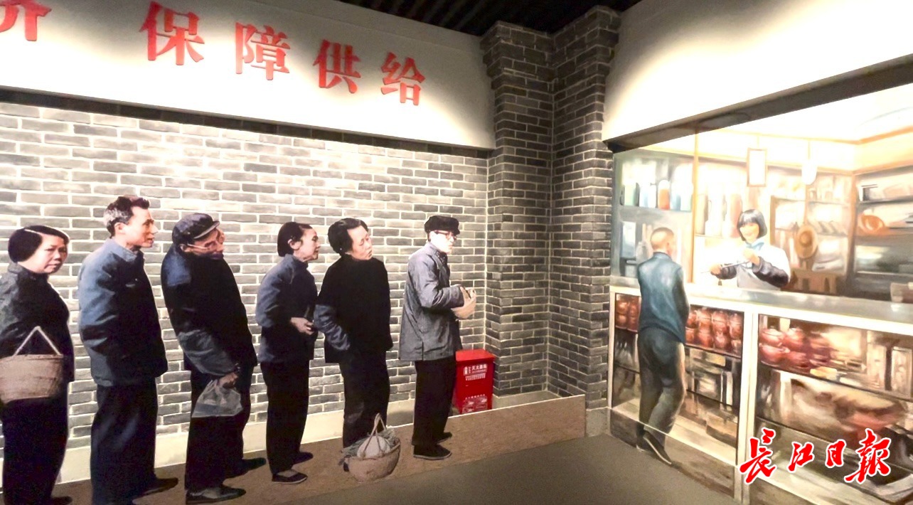展馆内还原新中国成立初,居民排队购买猪肉的情景。 记者陈玲 摄