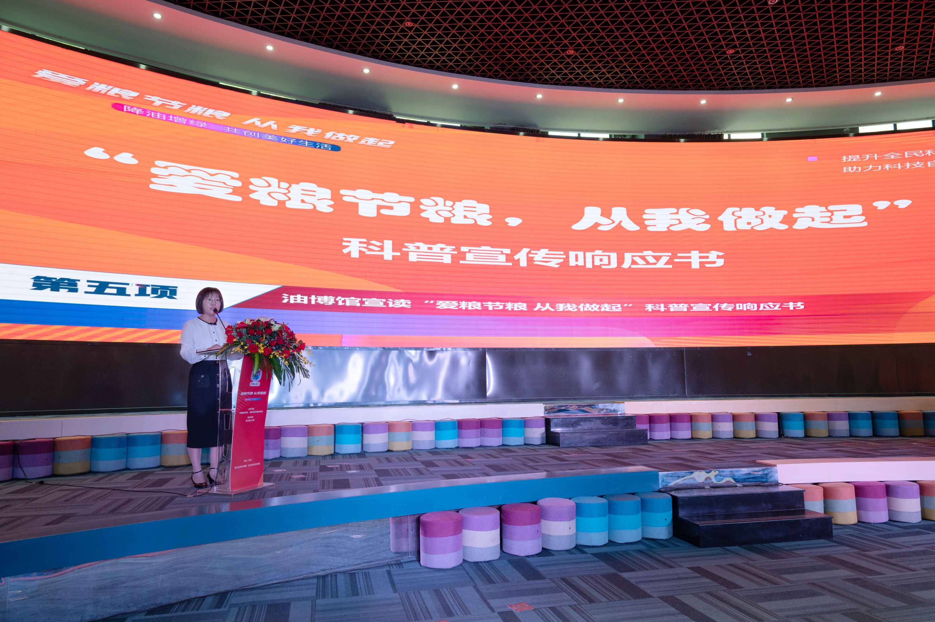 油脂博物馆代表全国35家学会科普教育基地和粮食行业博物馆,共同发布科普宣传教育的响应书。 通讯员王月 摄