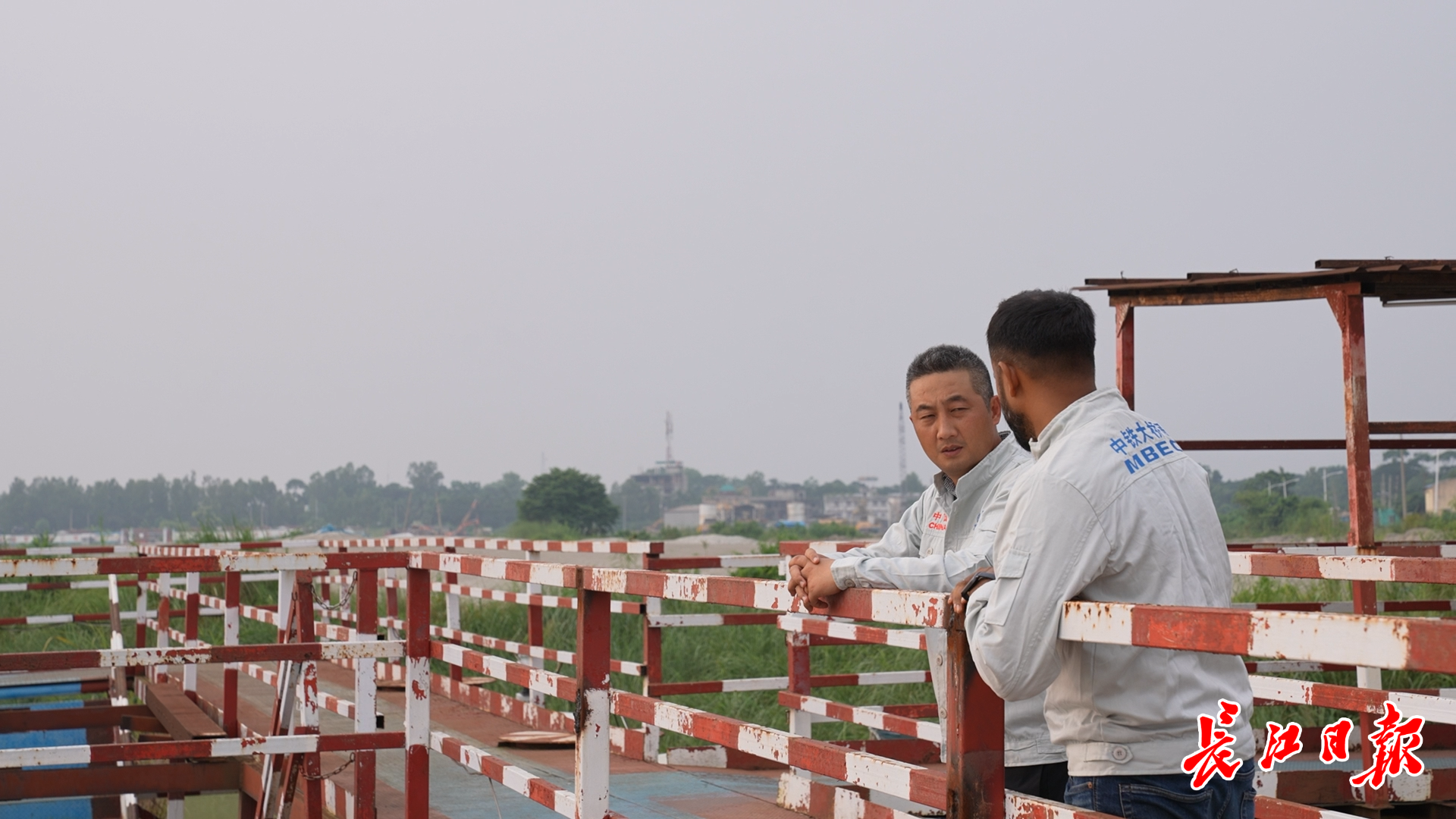 2016年夏,杨品祥带拉纳乘船去南岸,察看混凝土原材料进场情况。船至河中央,大风突然袭来,船只剧烈摇晃仿佛要翻船。“看到我慌乱的表情,师父拍了拍我的肩膀说:‘不要怕,不会有事。’”很幸运,那次风浪并未造成事故,两人顺利到达河对岸。
