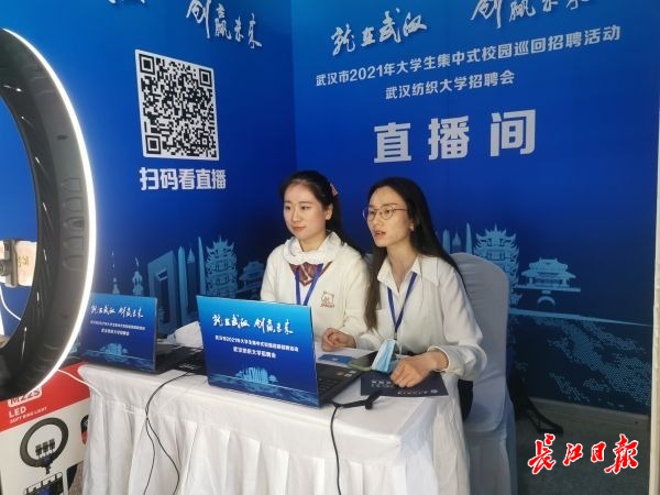 招聘会现场同步举行“直播带岗”。 长江日报记者吴曈 摄