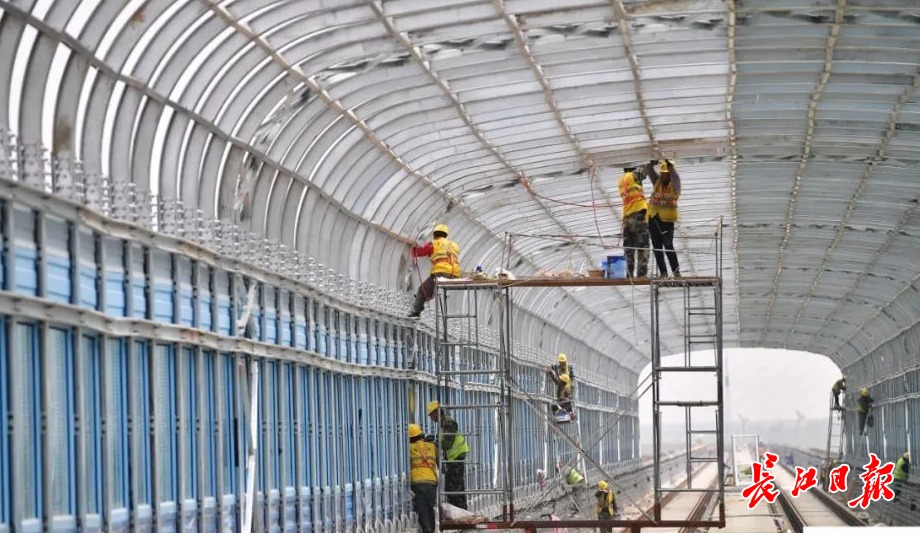 地铁16号线川江池站至沌口站高架段,工人正在安装声屏障。长江日报记者李永刚 摄