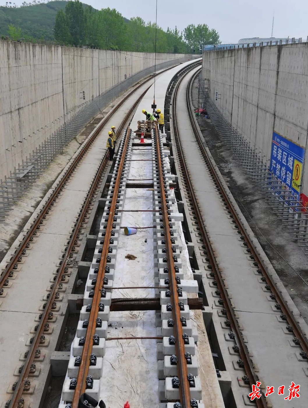 截至目前,区间靠近川江池一侧的铺轨施工全部完成,仅剩下沌口段这一部分,铺轨进入“施工冲刺期”。