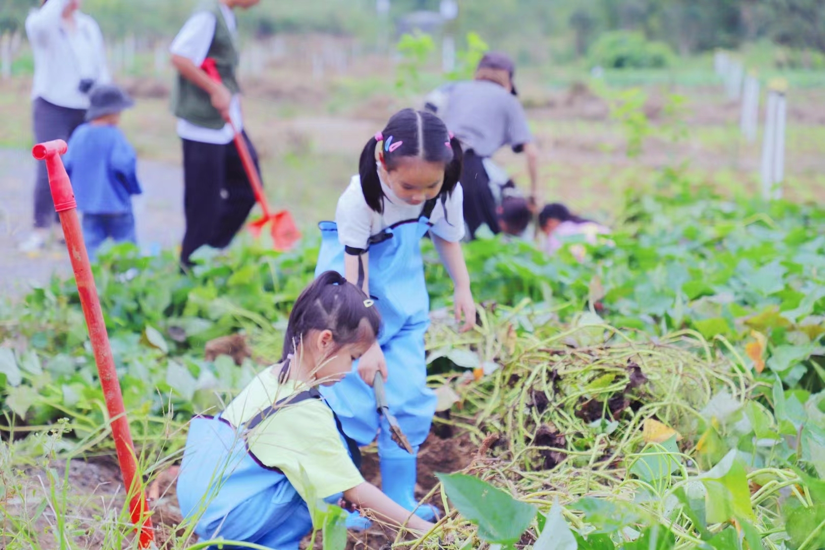 小朋友在林语未来村挖红薯。