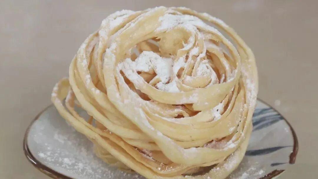 出锅后的东坡饼趁热撒上糖粉,口口香酥、满满清甜。