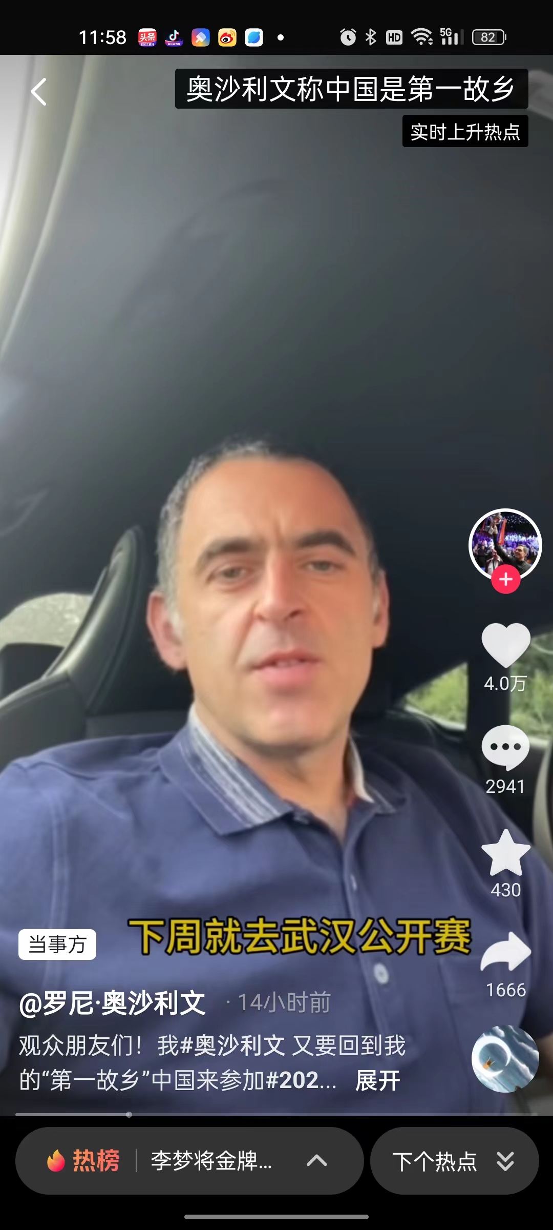 长江日报大武汉客户端10月6日讯(记者张琳)10月6日,世界斯诺克名将“火箭”奥沙利文通过个人社交媒体确认,自己将出战下周一在武汉开赛的世界斯诺克中国首站排名赛武汉公开赛。本站比赛将于10月9日—15日在武汉体育馆举行,这将是自2019年11月以来在中国举行的第一场斯诺克排名赛。
