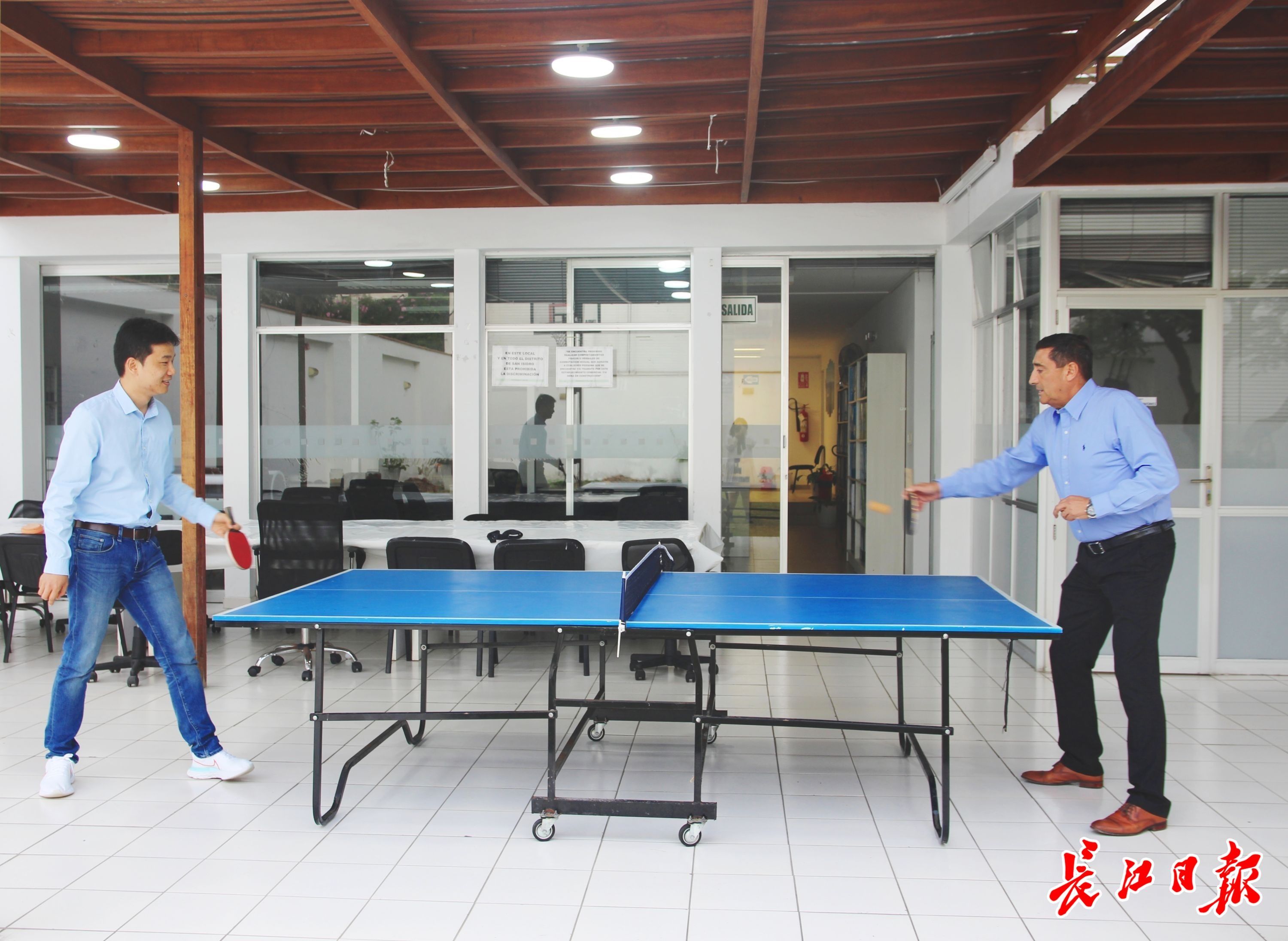 在王杰的影响下,马可·安东尼奥·努涅斯学会了打乒乓球,两人经常一起切磋球技。长江日报特派记者 张维纳 摄