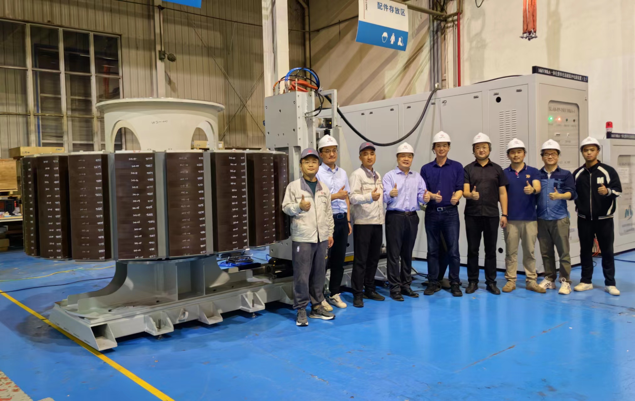 整体充磁团队在中车永济风机生产现场。