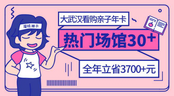 大武汉看购亲子年卡由湖北亲子通科技有限公司联合武汉看购科技有限公司发行。年卡签约的景点、场馆多样化,既有适合3~12岁儿童的太空学院、史丹弗童乐园、武汉鸟语林、美吉乐亲子园、桃源集亲子小镇等欢乐游戏场馆,也有适合12~25岁青少年的东湖皮划艇、实景密室、真人CS、爱蹦iBOON蹦床运动馆、华耀星空艺术馆等潮玩体验场所,还有适合20~65岁成年人的四季温泉馆爱漫温泉、太阳溪亲子漂流、武商摩尔国际及金逸国际电影院等游玩场所、休闲景区。