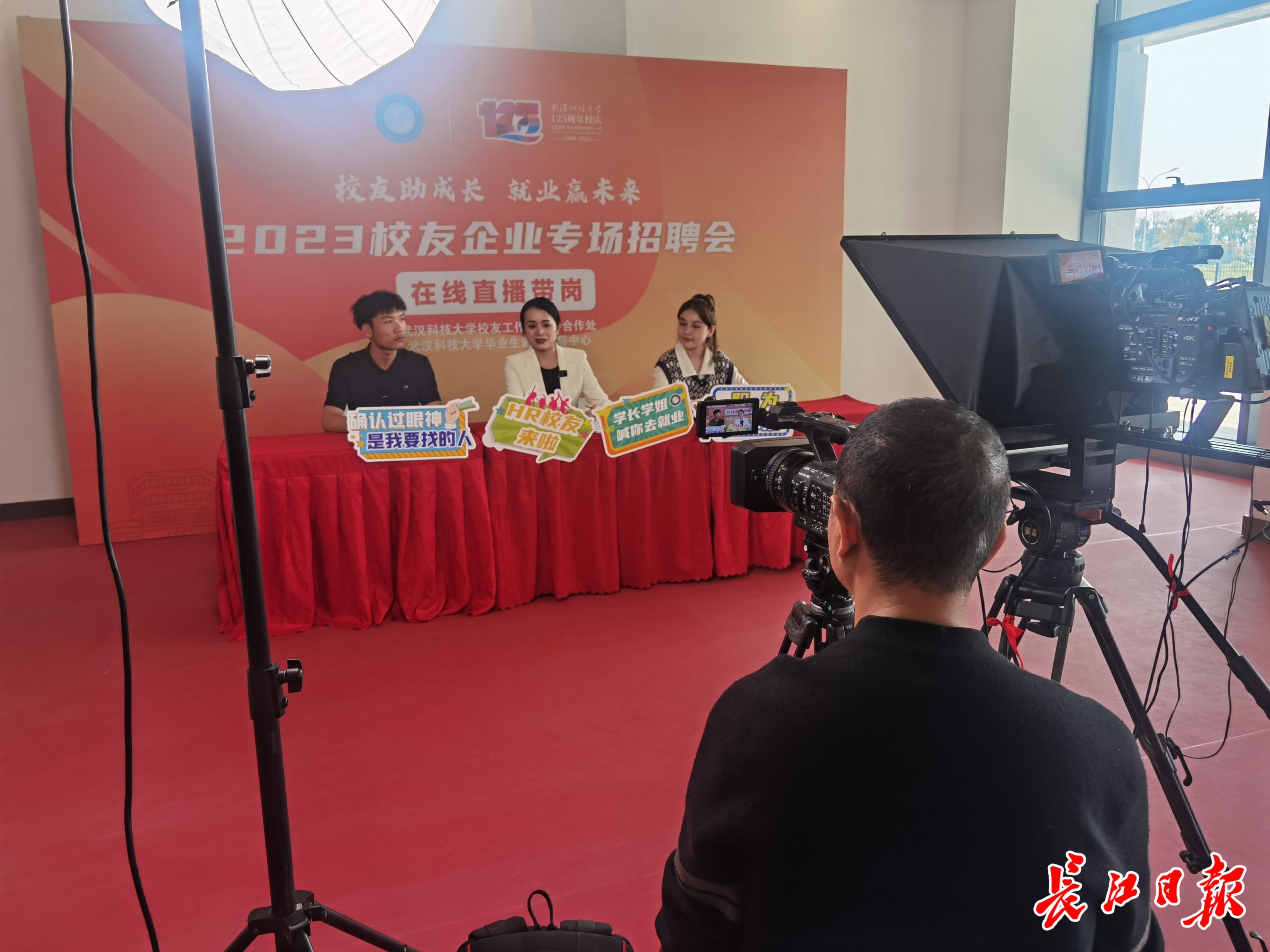 相比于线下招聘互动,招聘会现场还专门开设了直播带岗活动,企业招聘负责人和毕业生分别走进直播间推介自己。“我来自山西吕梁,本科和硕士研究生均就读于武科大,在武汉生活了快7年,想留在武汉工作。”已投递完20份简历的段贺排队挤进了直播间,能言善辩的他一口气说出了自己的很多优点,希望在汉谋一份智能制造或机电方面的工作岗位。“在线流量有7000多人,这样可以增加我的就业机会。”