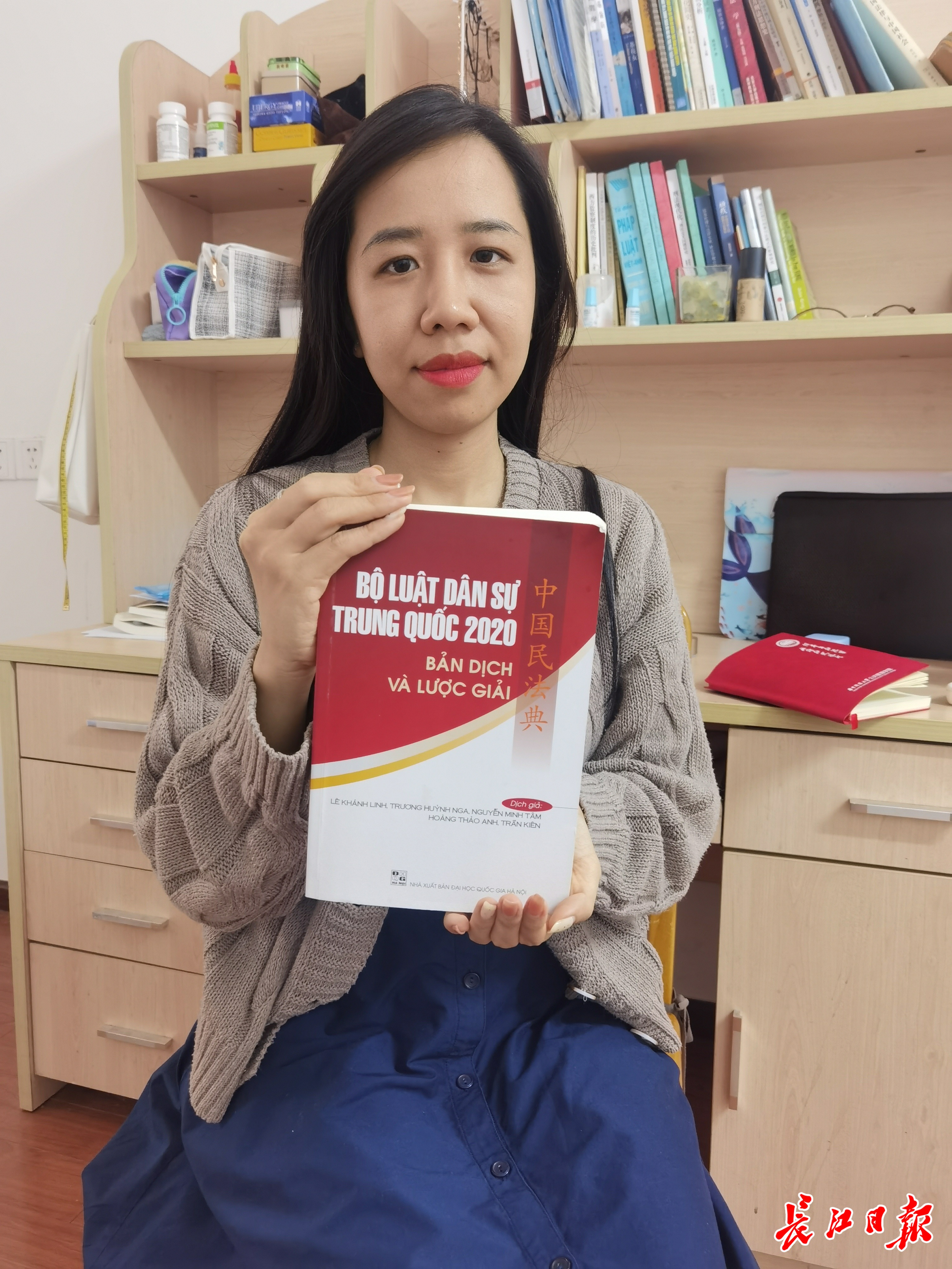 长江日报大武汉客户端10月25日讯(记者杨佳峰 通讯员卓张鹏)1260条,10多万字,来汉留学的越南女孩黎氏庆泠干了一件大事,她将《中华人民共和国民法典》(下称“民法典”)翻译成越南语,出版后在越南成抢手货。10月25日,在中南财经政法大学国际教育学院,博士生黎氏庆泠向记者展示了她翻译的成果。她说,今年年底前,她翻译的《中国民法典》将在越南第二次印刷1000册。