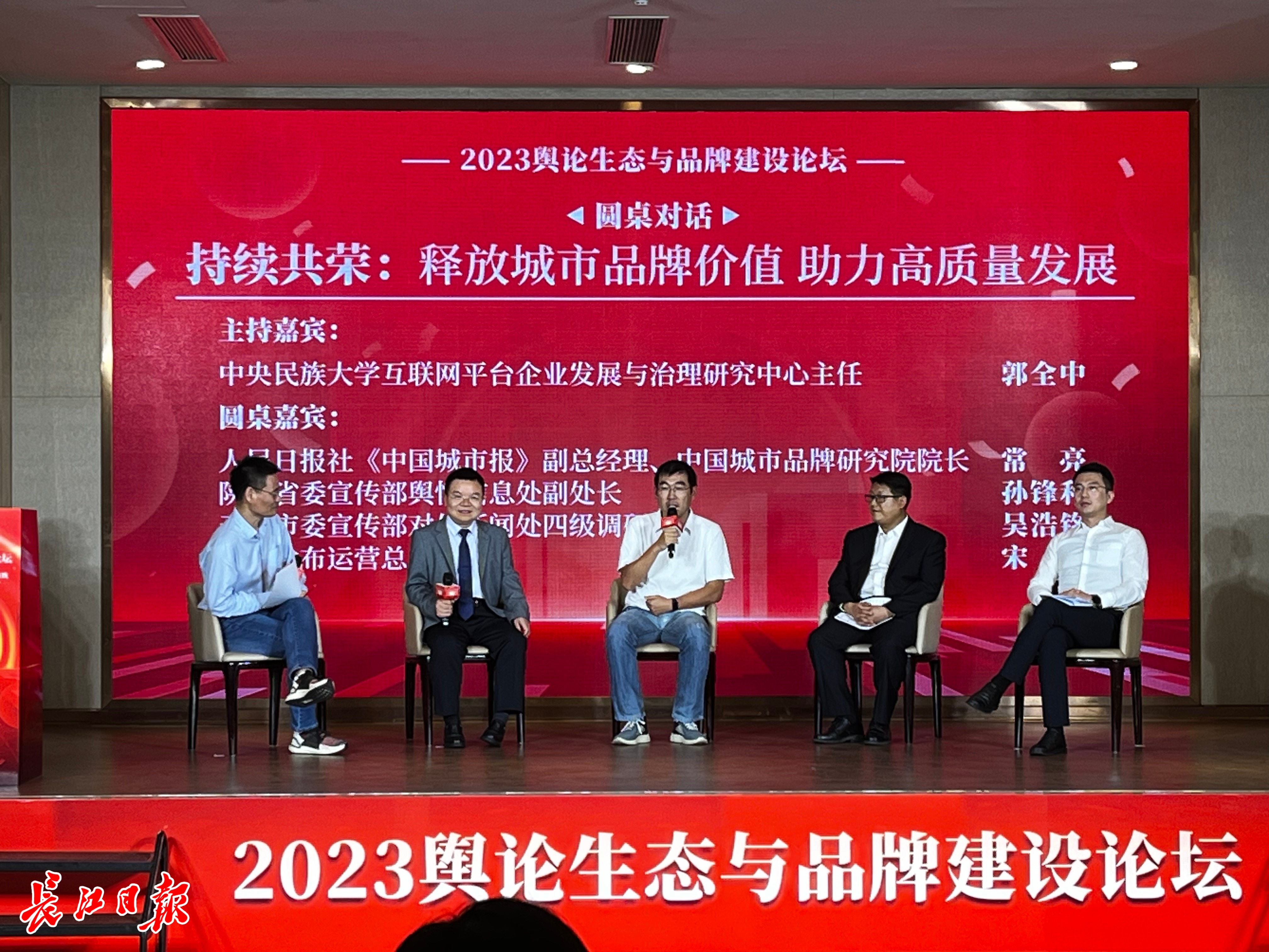 论坛上,120多名行业权威专家学者、城市代表、知名企业嘉宾齐聚一堂,就中国舆论生态变迁、媒体的数字化转型与内容创新、城市品牌价值塑造、媒体发展与企业舆论生态建设等话题,为舆论生态建设、品牌高质量发展建言献策。陕西省委宣传部、天津市委宣传部、武汉发布、财经网、中铁十一局、中交投资、周黑鸭等单位相关负责人还围绕“持续共荣:释放城市品牌价值 助力高质量发展”“协同创新:媒体发展与企业舆论生态建设”等主题进行了圆桌对话。