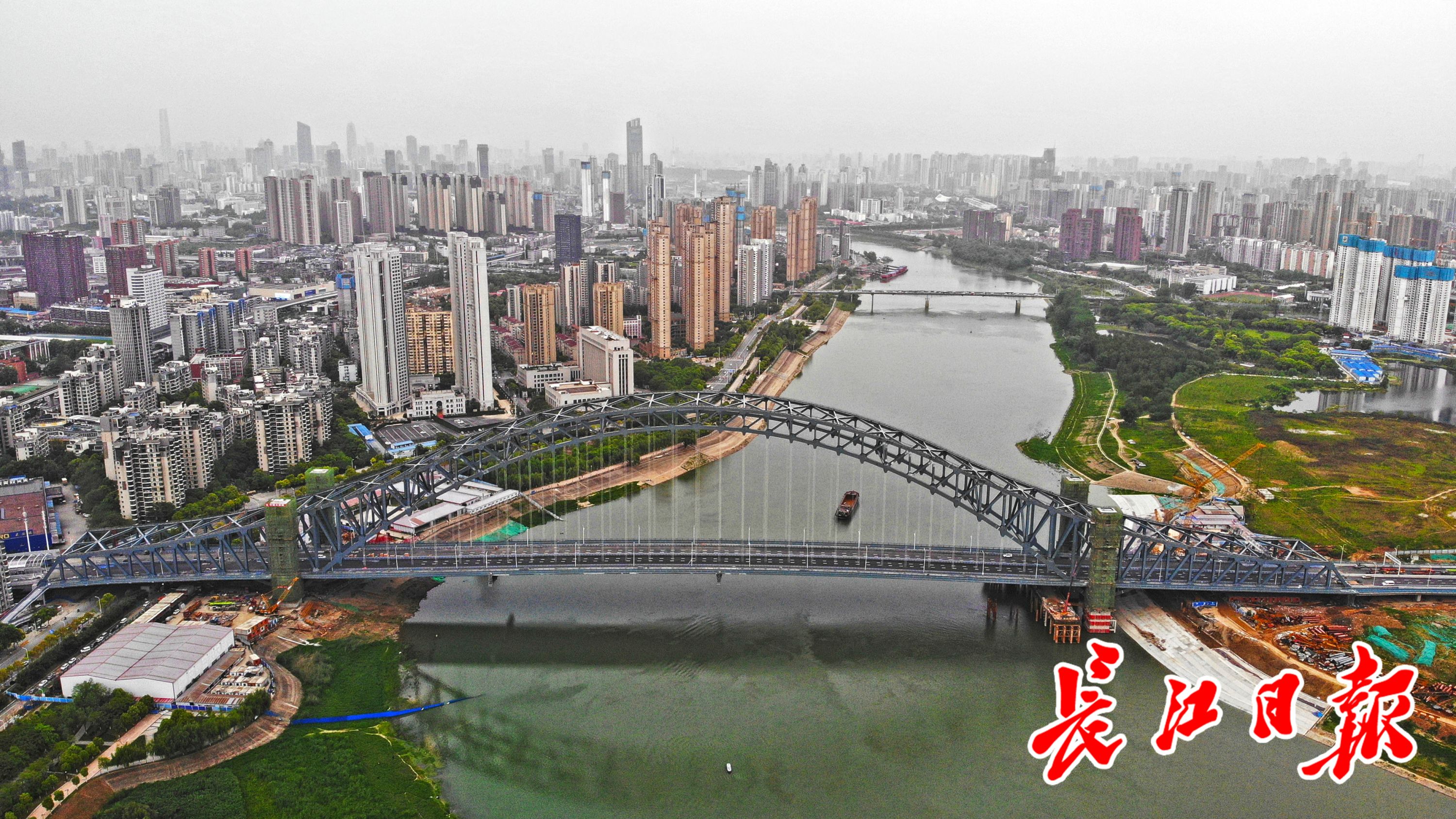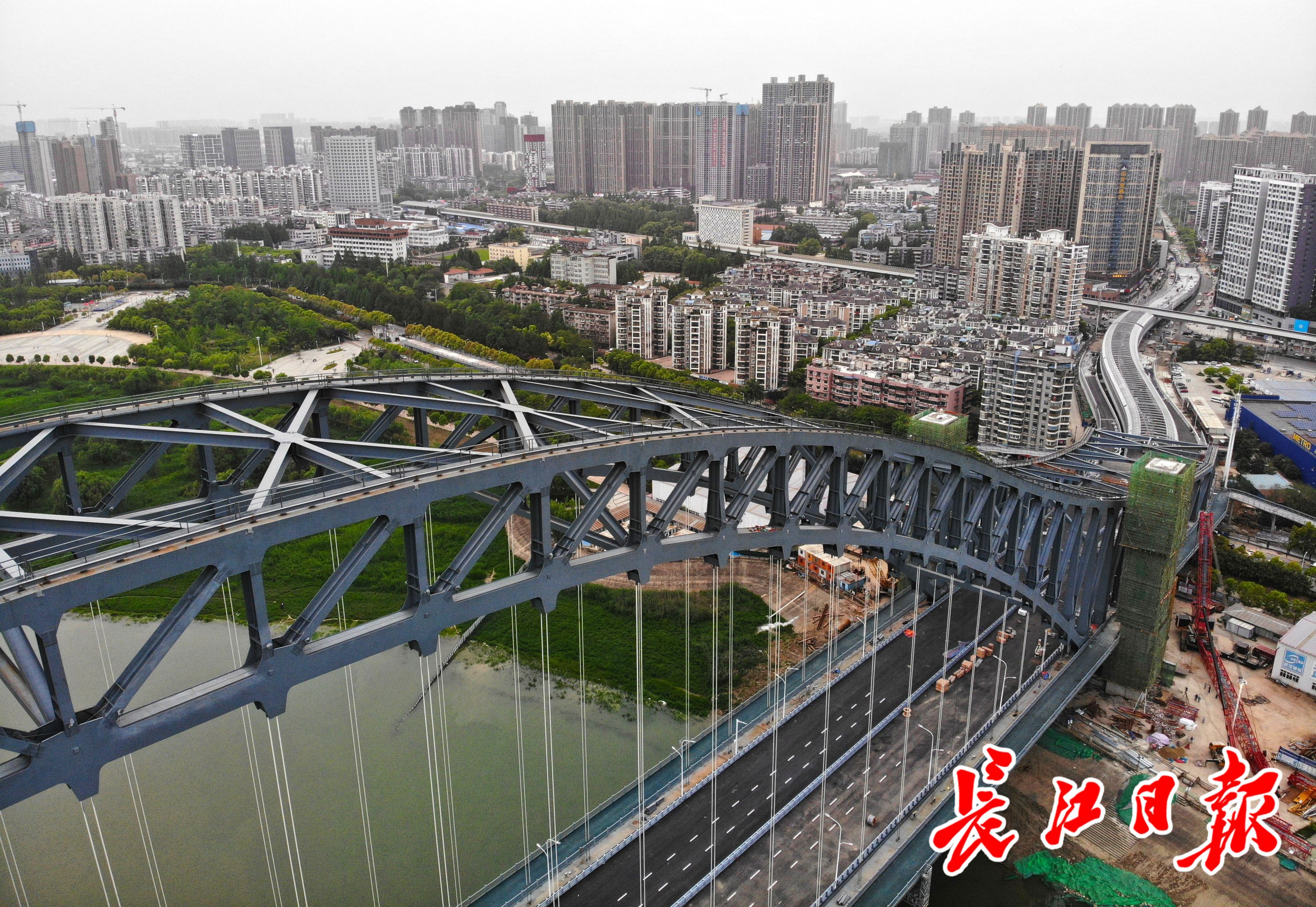 长江日报4月18日讯 2021年4月17日傍晚,武汉新地标——汉江湾桥建设已进入尾声,正在进行附属结构施工,汉口岸解放大道南侧并行式上下桥匝道已经建成,下穿轨道交通1号线的引桥段还在安装隔音屏,即将具备通车条件。