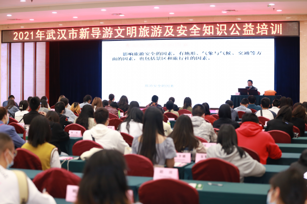 为提升新导游员的职业素养和服务水平,进一步加强导游队伍建设,提升导游综合素质和职业技能,主办方为全市600余名新导游提供文明旅游及安全知识现场公益培训,涉及文明旅游、旅游安全、法律法规、应急处置以及电子导游证申领等内容,为大武汉文旅发展蓄势蓄力。本次公益培训采用线上课堂与现场教学相结合的模式,自4月19日起至5月14日,还将继续为新导游员们提供线上培训。
