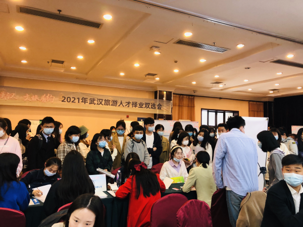 长江日报4月18日讯 随着武汉旅游行业复苏迈出加速度,各旅行社、景区、酒店等旅游企业纷纷开始“招兵买马”广揽人才。,由武汉市文化和旅游局主办、武汉市旅游信息与服务中心承办、武汉人才市场有限公司和武汉人才市场评荐有限公司协办的“薪安武汉,文旅有约”——2021年武汉市旅游人才择业双选会在武汉江城铁路大酒店举行,近百家知名企业参加。
