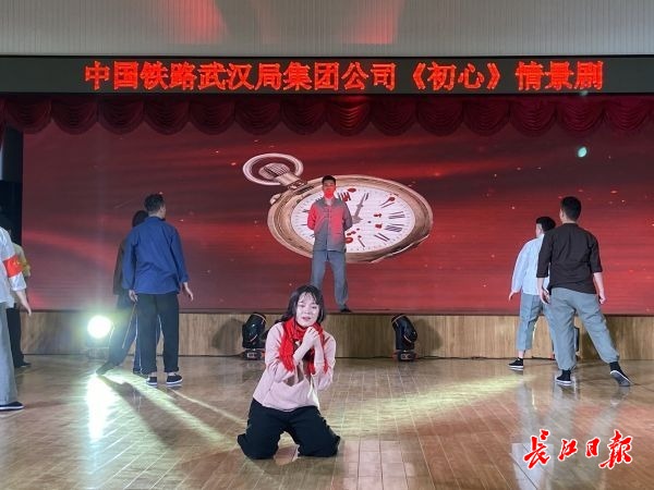 “今年是建党100周年,武汉是二七大罢工的发起阵地,为了展现以林祥谦为代表的铁路人的革命精神,局宣传部从去年12月就开始了剧本的创作和表演的编排,中间经过了数次修改,还制作了表演的背景视频。”该负责人说,参与这部情景剧创作和演出的基本都是来自铁路一线的职工,一共有28人,除了少部分是文工团成员,大部分都没有表演经验,大家通过不断地学习和练习,将故事演活。
