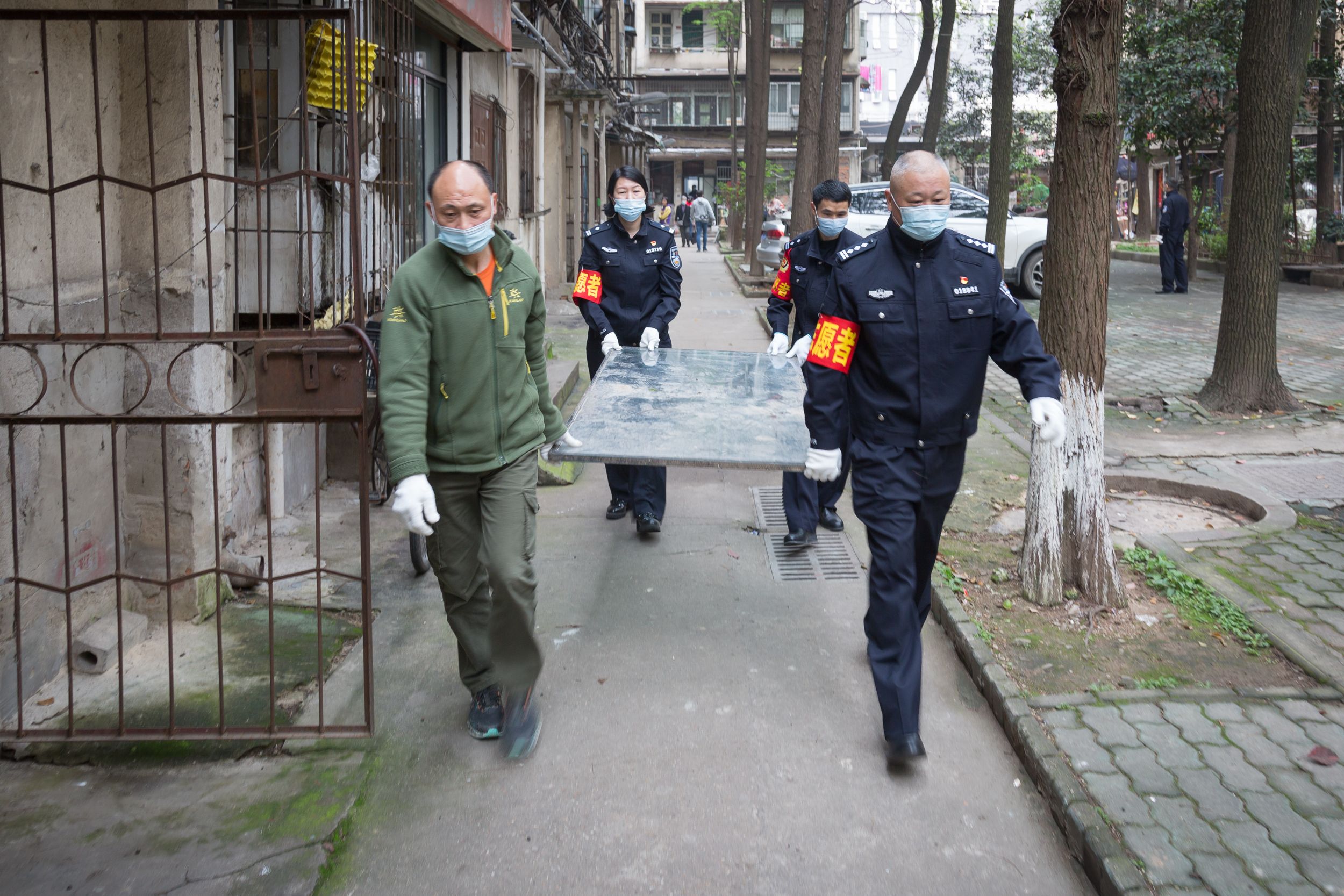 4月16日,武汉长江二桥大队的8名队员,到共建单位武昌区杨园街电力新村社区开展“周末清洁家园”活动。市文明办供图