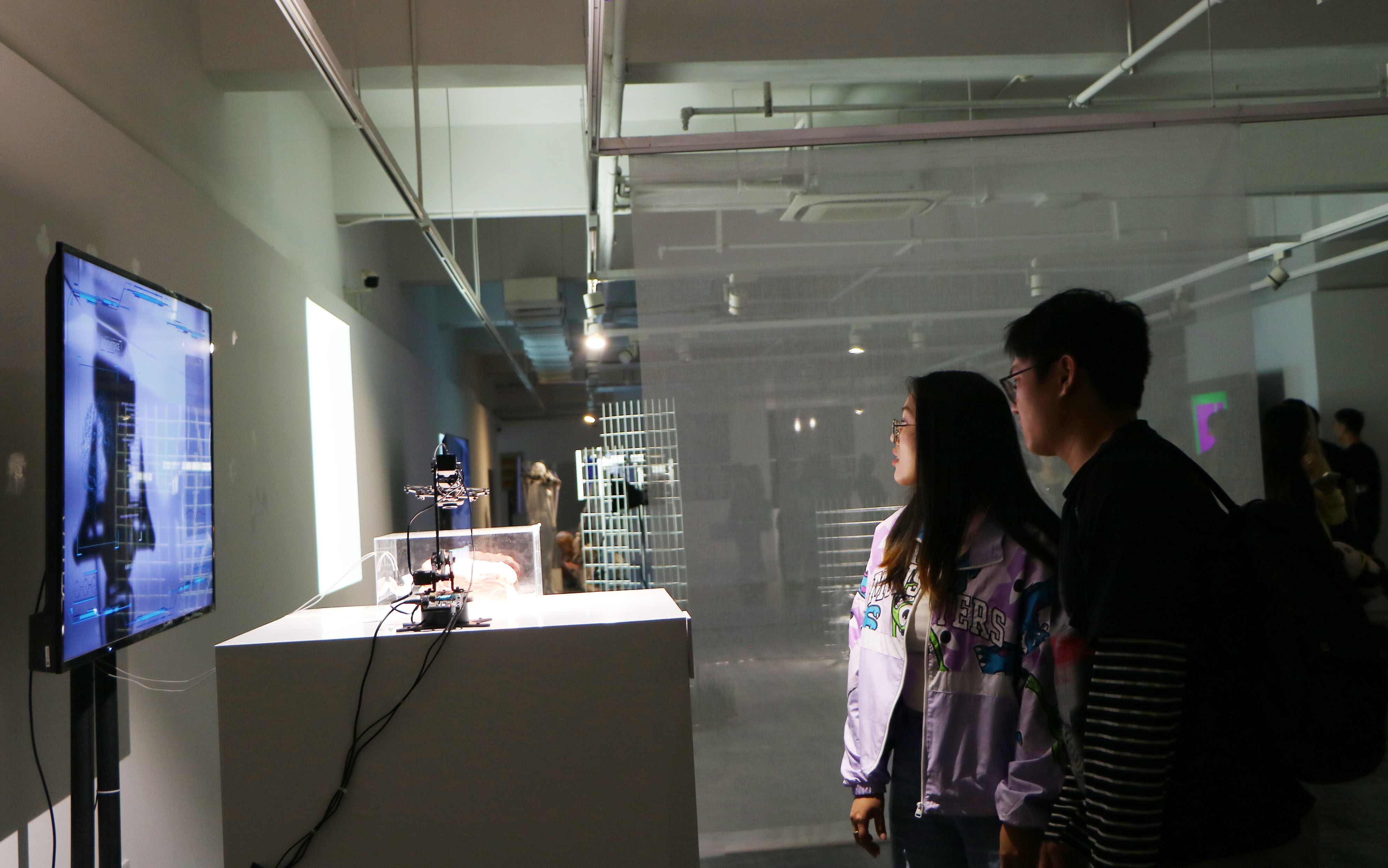复杂的机械、精密的仪器、动态的画面……展厅内,一件件充满艺术性和科技感的作品,为观众呈现一场未来媒体艺术的盛宴,以生物机器的角度诠释了生物科学和未来意识的可能性,尽显自然的奇妙、生命的伟大和无限的想象。