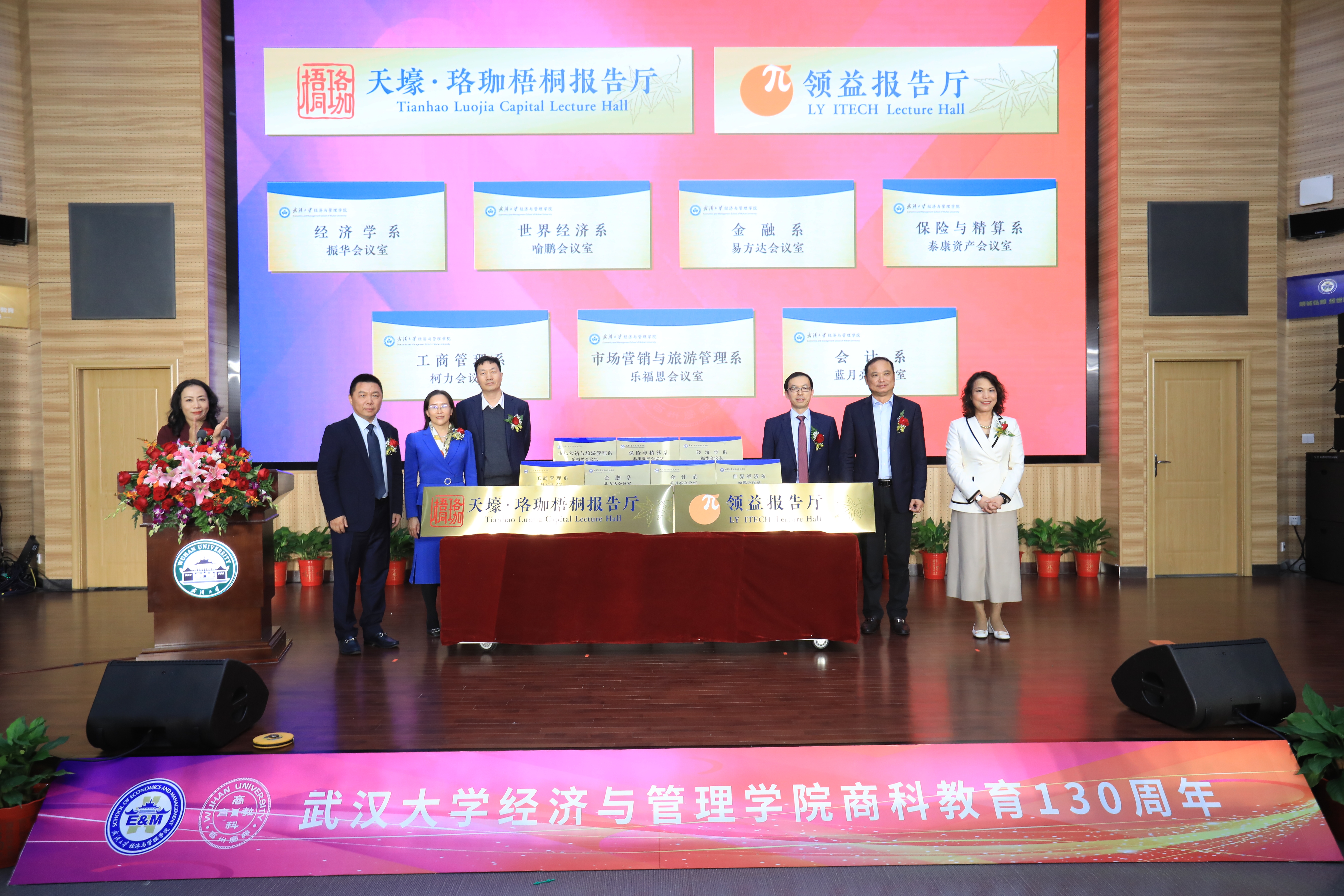 “心有大爱,情系珞珈”,众多校友倾情回馈母校支持学院发展,会上还举行了学院报告厅和会议室捐赠冠名揭牌仪式。