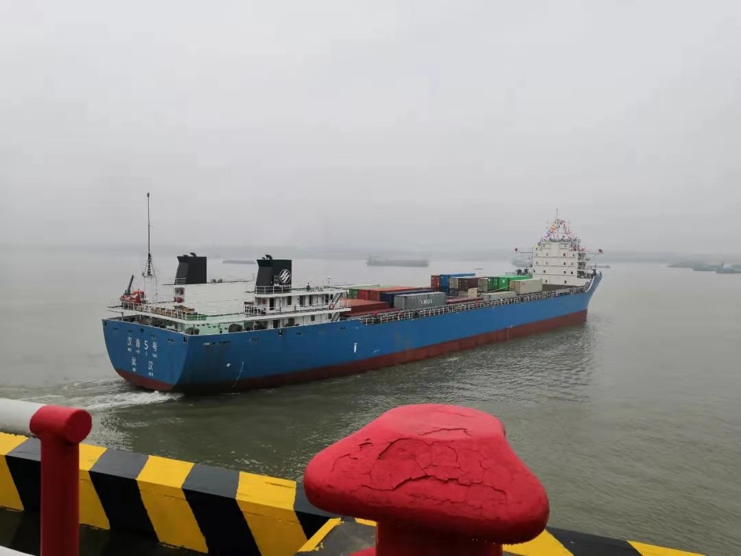 武汉市从2017年开始启动建造载箱量超过1100标准箱的1140船舶,到“汉海1号”“汉海2号”“汉海3号”“汉海7号”,以及此次“汉海5号”陆续投用,武汉5艘“汉海”系列江海直达集装箱船全部投入运营,宣告武汉新港千箱级船队正式成形。