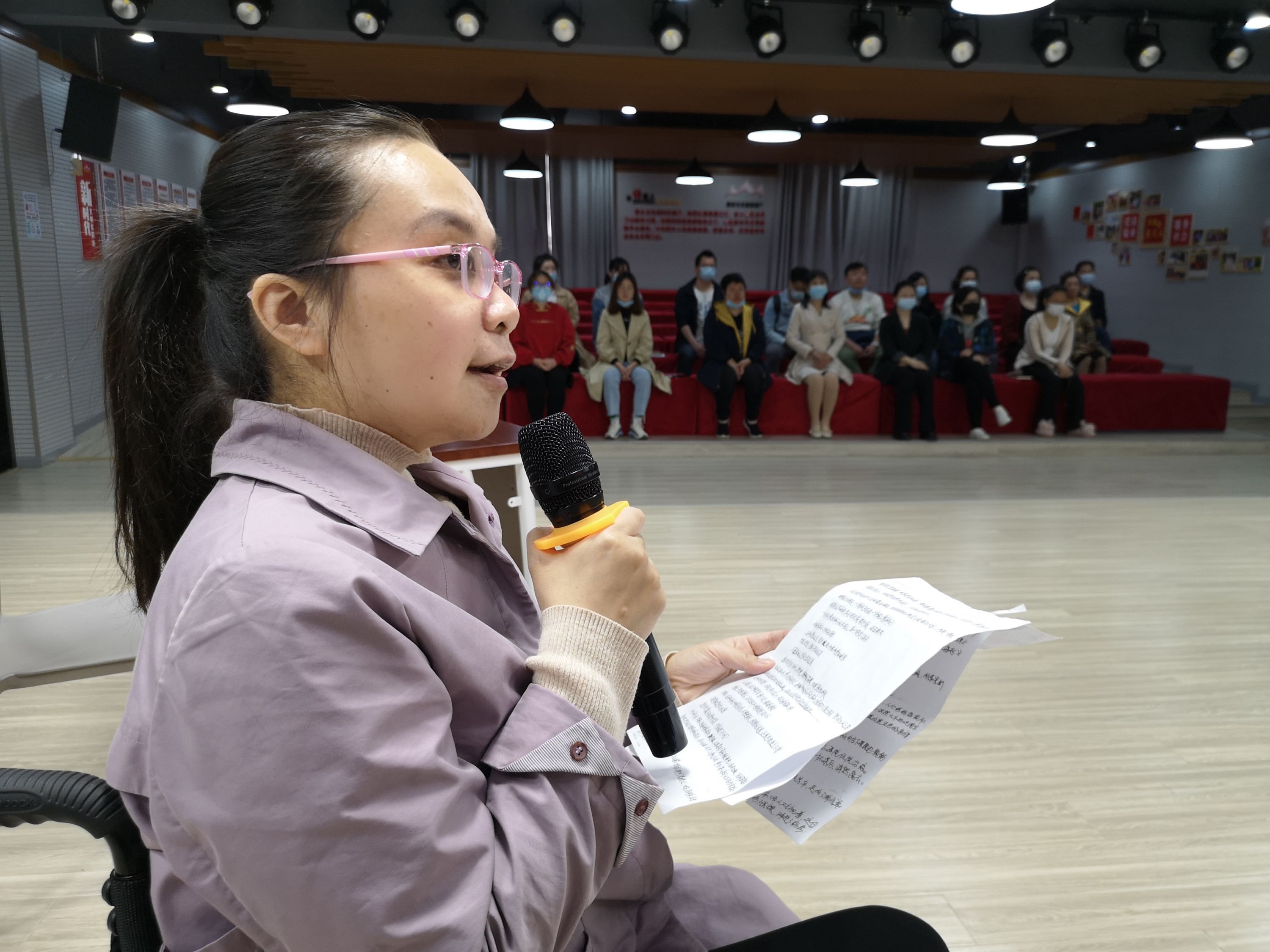 长江日报4月20日讯 19日,在青山区新沟桥街道蒋家墩社区二楼的社区影院,由社区残疾人协理员杜诚诚主持的党史课堂“诚心相约”正式开讲。为庆祝建党100周年,今年,杜诚诚将盲人电影院变成“永远跟党走”宣传教育的课堂,特殊的体验让党员群众印象深刻。