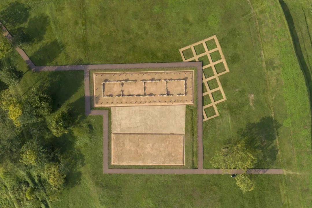 盘龙城遗址博物院在建筑原来的位置上复原了地基和墙体部分,并绘制了建筑结构图纸。