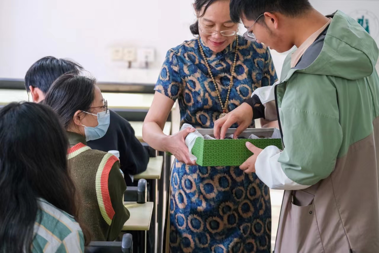 吴红认为,把非遗作品穿在身上,带进课堂,更能直观地展示中华上下五千年的文明,该课程的意义也真正走进每位学生的心里。2022级密码科学与技术专业学生秦灏阳说:“吴老师这种教学方式,让我感觉课程‘活’起来了,也激起了我对中国传统文化的兴趣。”每次上课,吴红还会根据教学内容设置相应的提问,并结合自己的旅游经历向学生讲述中国文化故事。