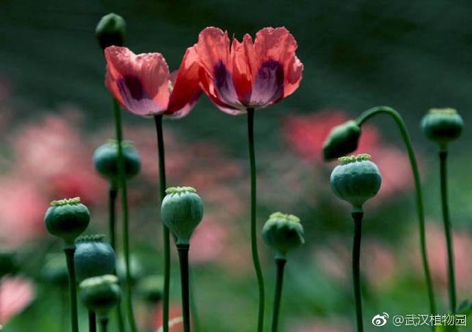 在罂粟属的植物中,还有个常见的观赏花卉虞美人,因为两者花期一致,外形相似,常常被公众混淆。在罂粟笼子的周围,武汉植物园还种植了上白株罂粟的“姐妹花”虞美人,方便市民对比鉴别。