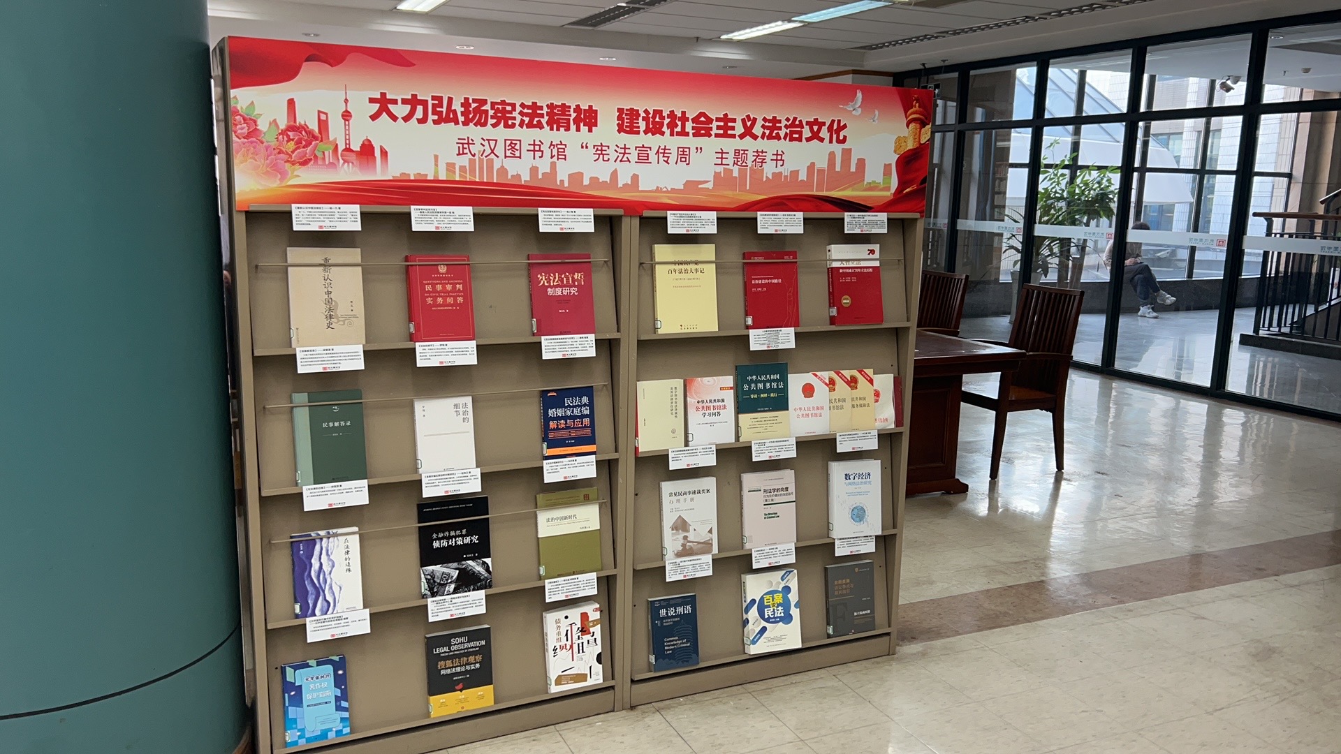 武汉图书馆四楼社会科学参考阅览室,设专架进行“宪法宣传周”主题荐书。