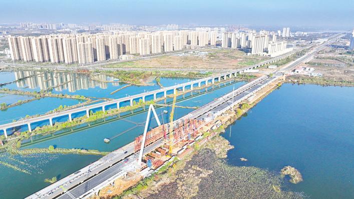 中建三局城市投资运营公司葛店基础设施指挥部现场工程师王志介绍:“该项目的建成将极大改善现有区域拥堵的交通状态,提升路网主骨架的通行能力,更加紧密联系武汉新城葛华片区和光谷片区。建成后将成为光谷、葛店融合发展的地标性建筑。”