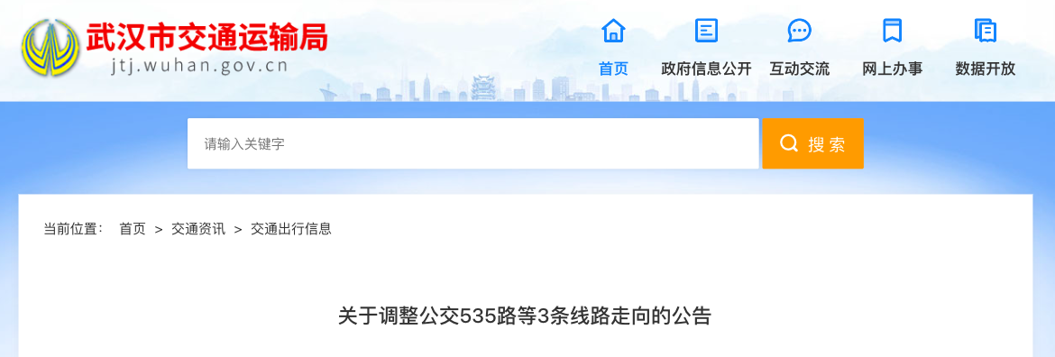 12月15日,武汉市交通运输局官网发布出行提醒,为配合相关施工,进一步优化线网,方便市民出行,公交集团拟对部分公交线路进行调整,涉及走向调整、站点迁移等,大家出行请注意。