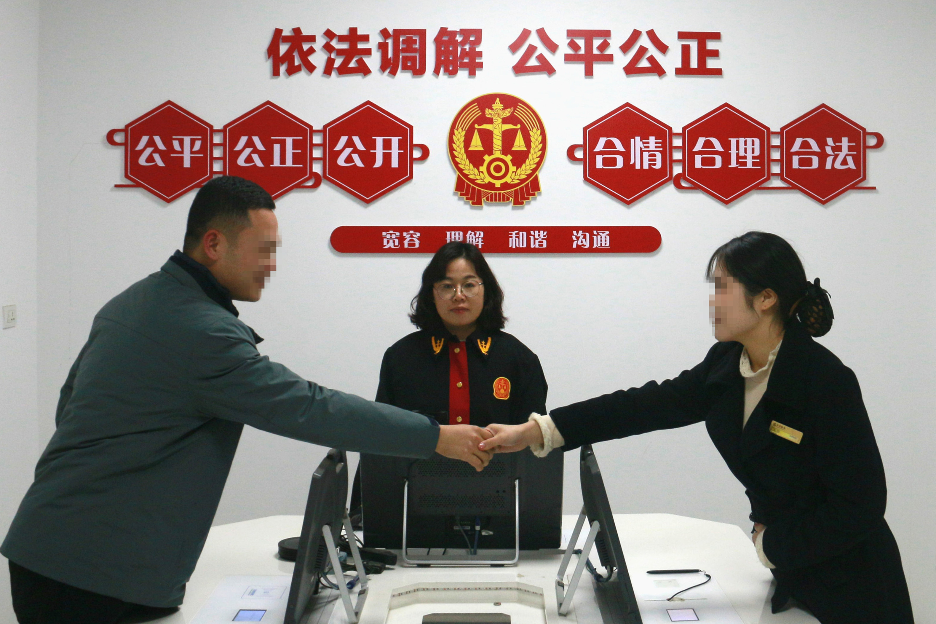法官(中)对业主及物业公司代表进行调解。通讯员陈章颖 摄
