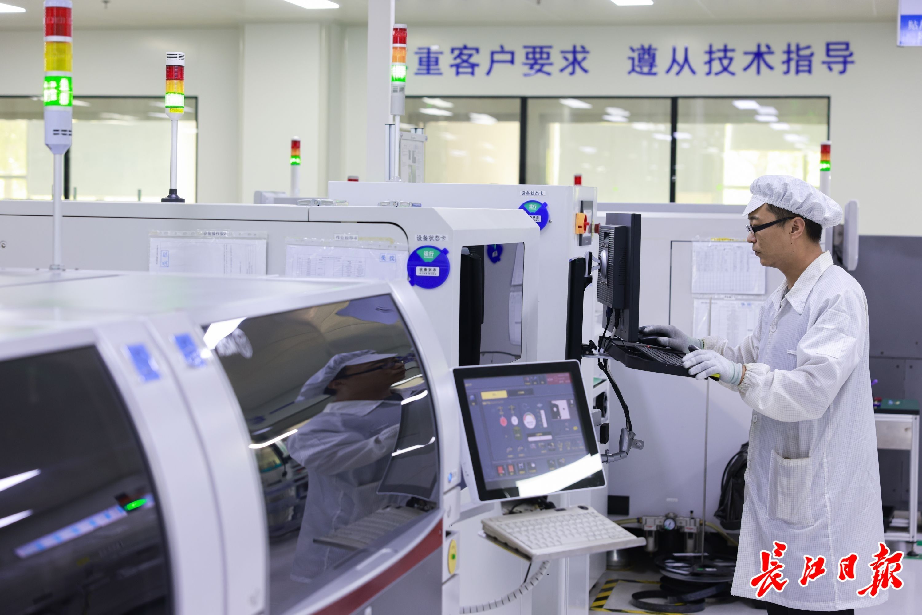 楚冠捷生产线上,工作人员正在操作产线设备。长江日报记者胡冬冬 摄