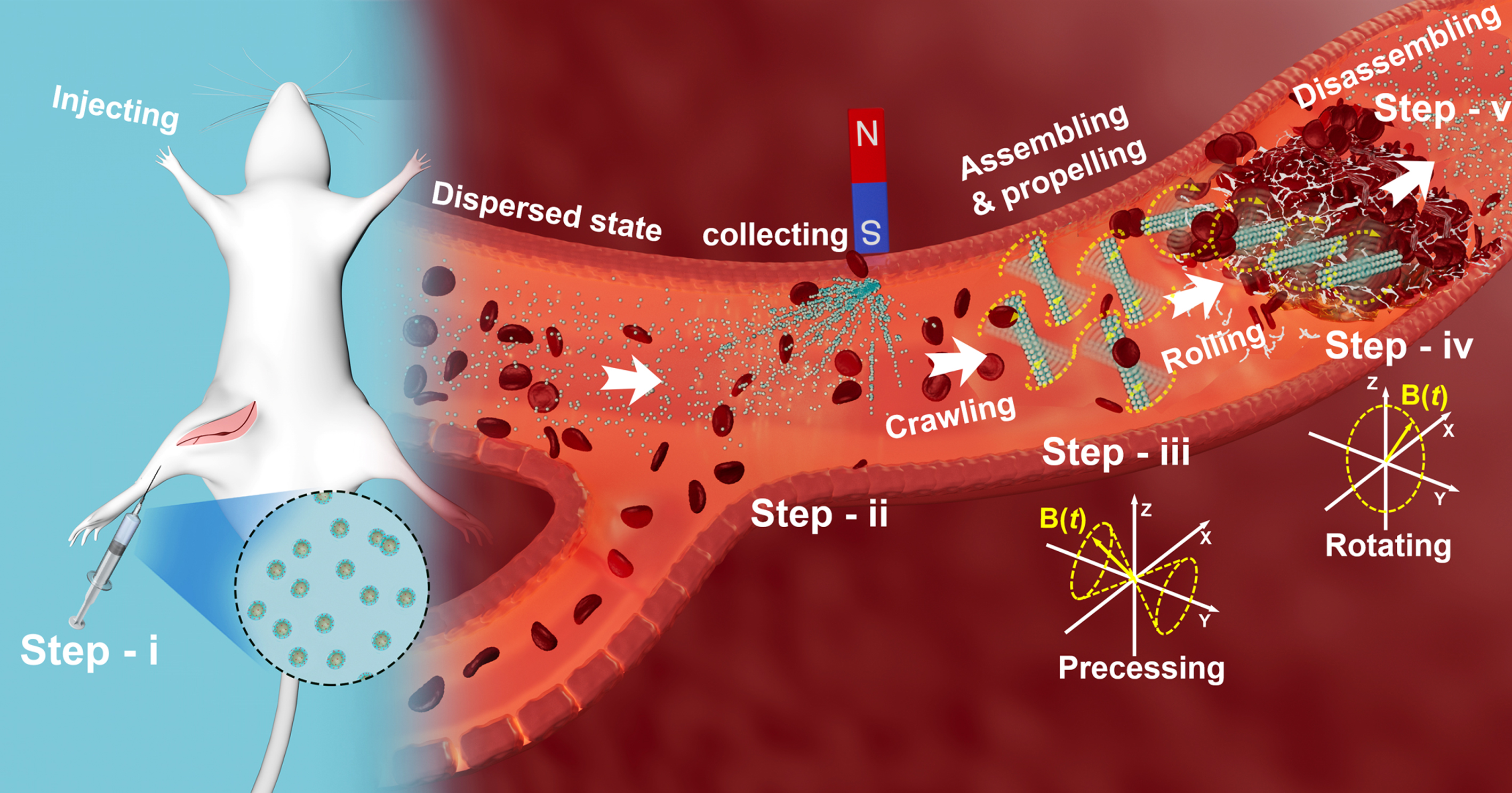 纳米机器人实现4小时内快速溶栓的示意图。