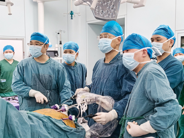 朱晒红教授带领熊非主任团队手术中。