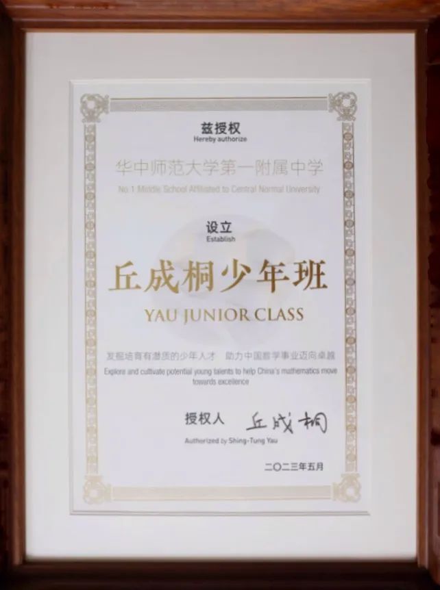 长江日报大武汉客户端1月8日讯(记者杨枫)近日,“丘成桐少年班”授牌仪式暨数学人才培养交流会在复旦大学隆重举行。会上,丘成桐为华师一附中授牌,授权该校设立“丘成桐少年班”。目前,这是“丘成桐少年班”在湖北唯一授权的学校。