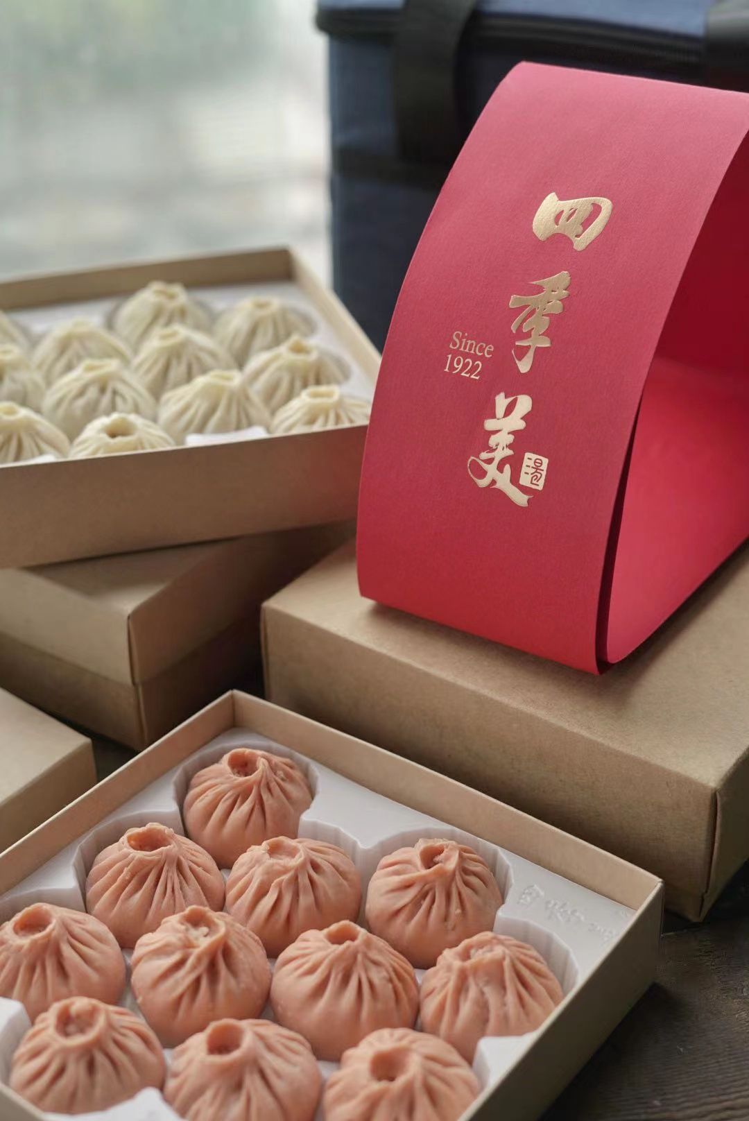 为了方便全国各地的亲朋好友吃到四季美的汤包,今年,四季美推出了速冻年货礼盒。“我们没有添加剂,需要冷冻,有效期很短,但最短也有15天,饺子可以放一个半月。有武汉消费者购买寄到全国各地。”四季美(武汉)饮食有限公司总经理张德隽介绍,目前四季美饺子、汤包、烧卖均有速冻可选,消费者可以自由搭配组建年货礼盒,其中四季美主打的汤包就有6个选项。