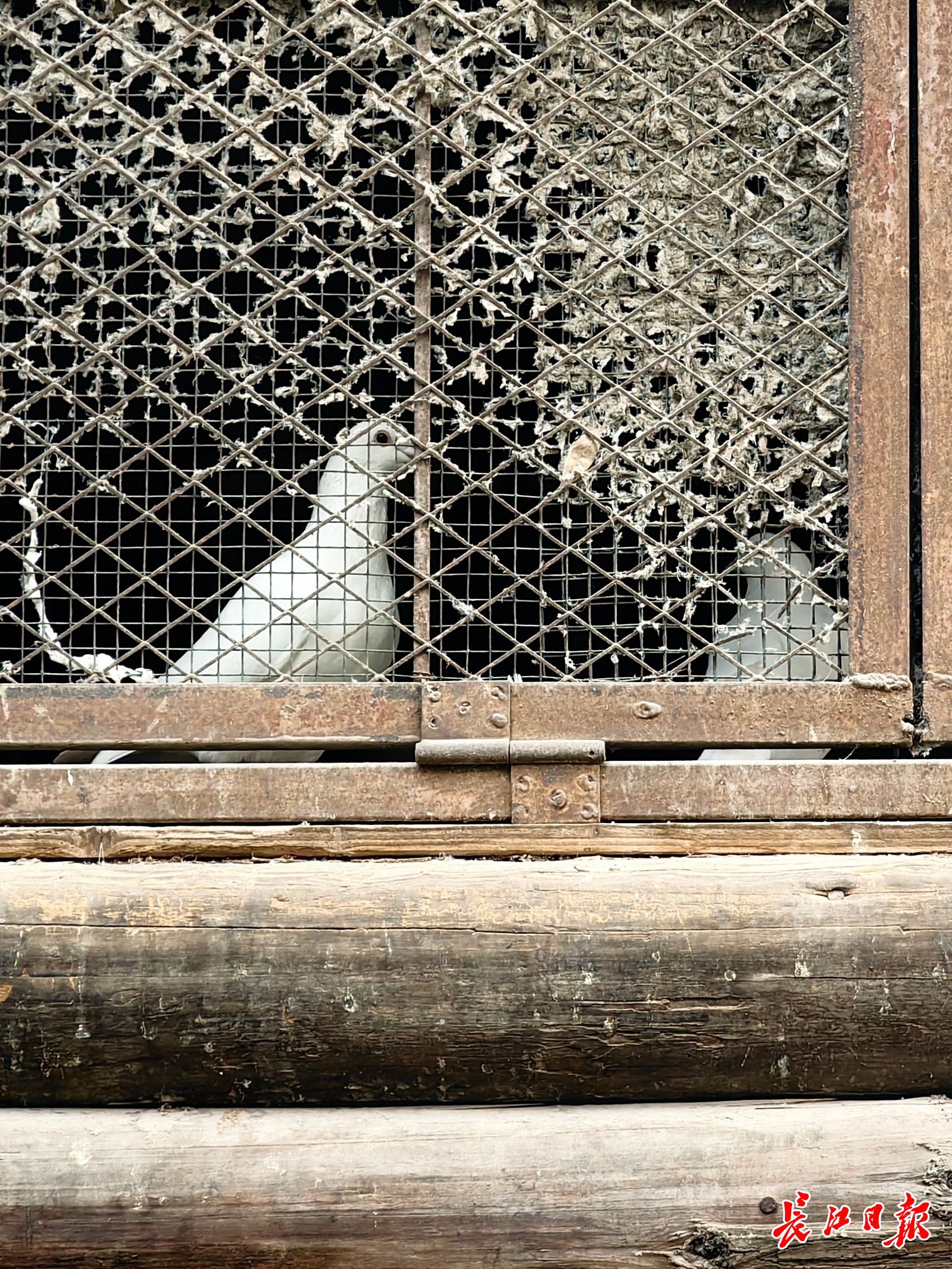 9日上午,长江日报记者在解放公园鸽子广场看到,用木头建筑的鸽舍外墙陈旧斑驳,屋顶两个窗户玻璃破碎,被糊上白纸挡风。出入口处的栏杆也锈蚀松动了,手扶上去直摇晃。