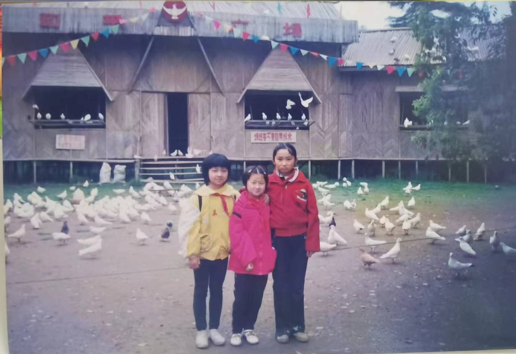 “00后”女大学生小张与两位同学来到鸽子广场打卡。她说:“我从小就在这里喂鸽子,来拍张照片做个纪念。”