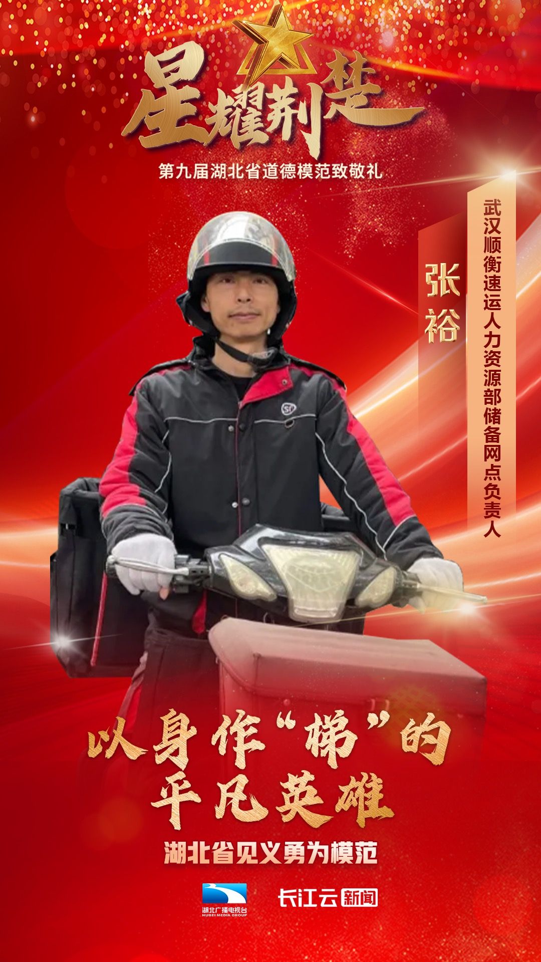 武汉顺衡速运人力资源部储备网点负责人张裕获评见义勇为模范。