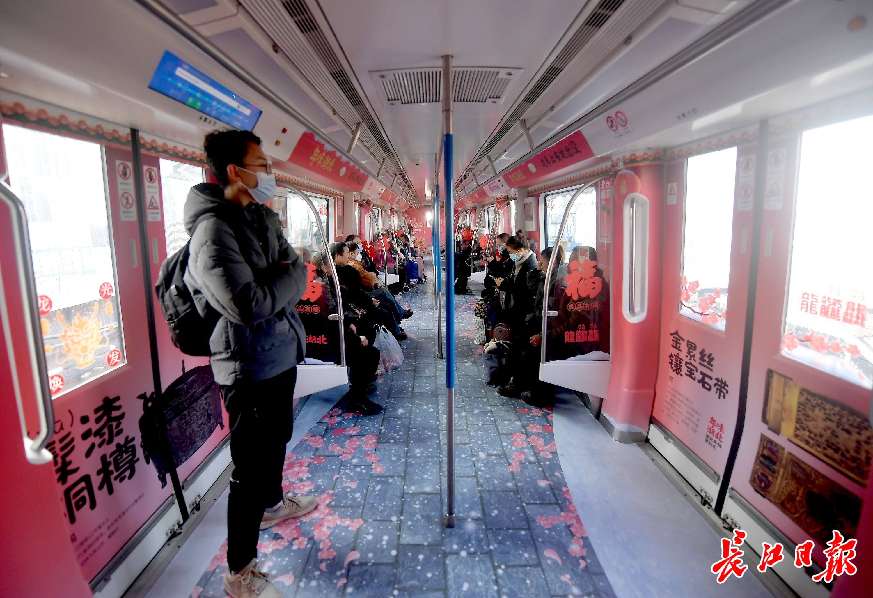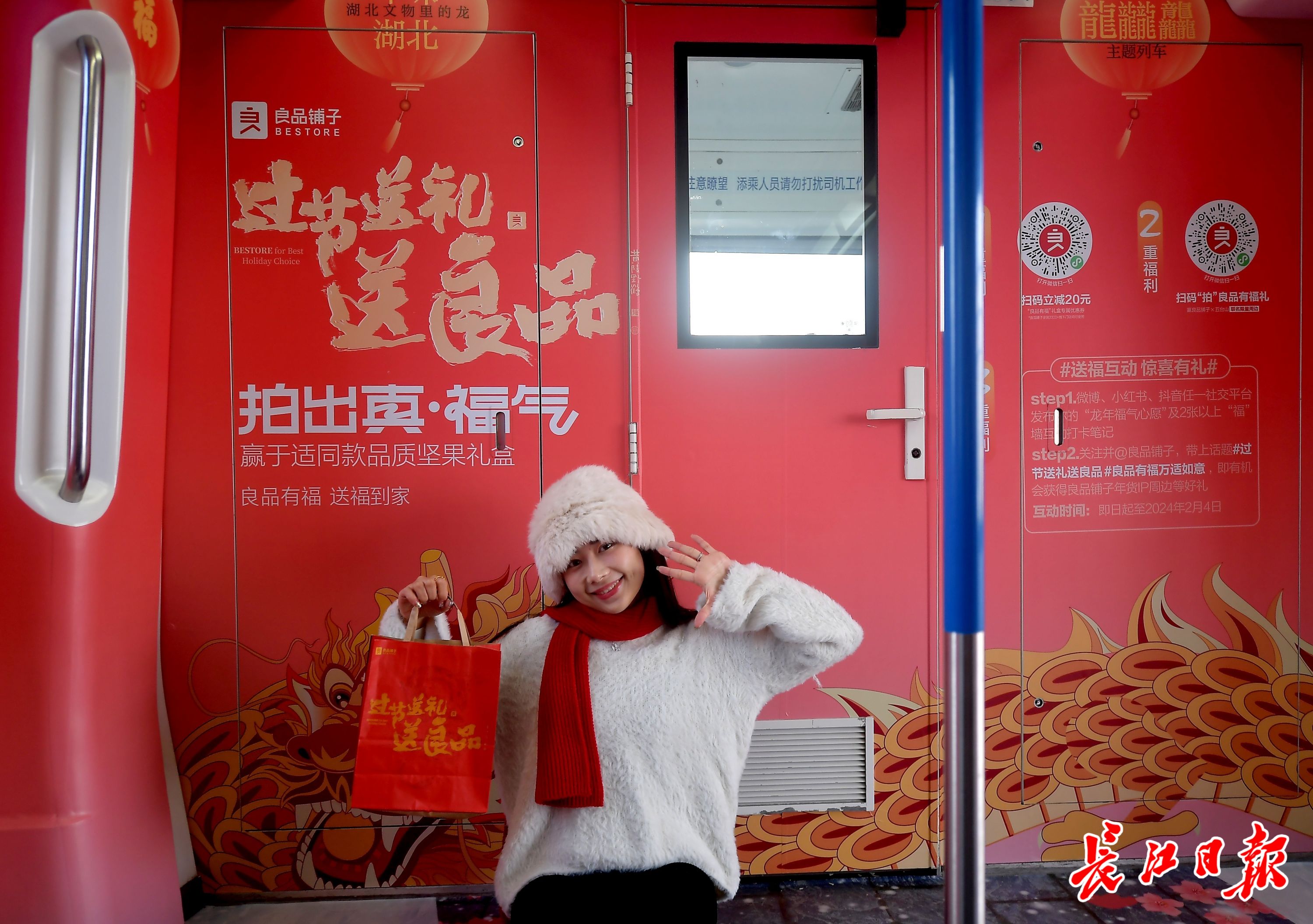 该地铁专列由湖北省博物馆、武汉地铁运营公司、良品铺子、武汉理工大学等联合打造,是国内首条“龙地铁”。“龙”光焕发的地铁引发武汉市民争相打卡,全国各地网友热评“武汉真会玩”“武汉龙年的氛围感来了”,“龙地铁”俨然成了武汉新春新打卡点。