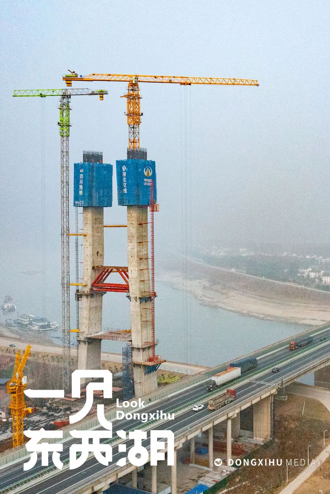 目前,汉江特大桥新桥主塔即将封顶,6标项目整体预计于2025年年底建成通车。
