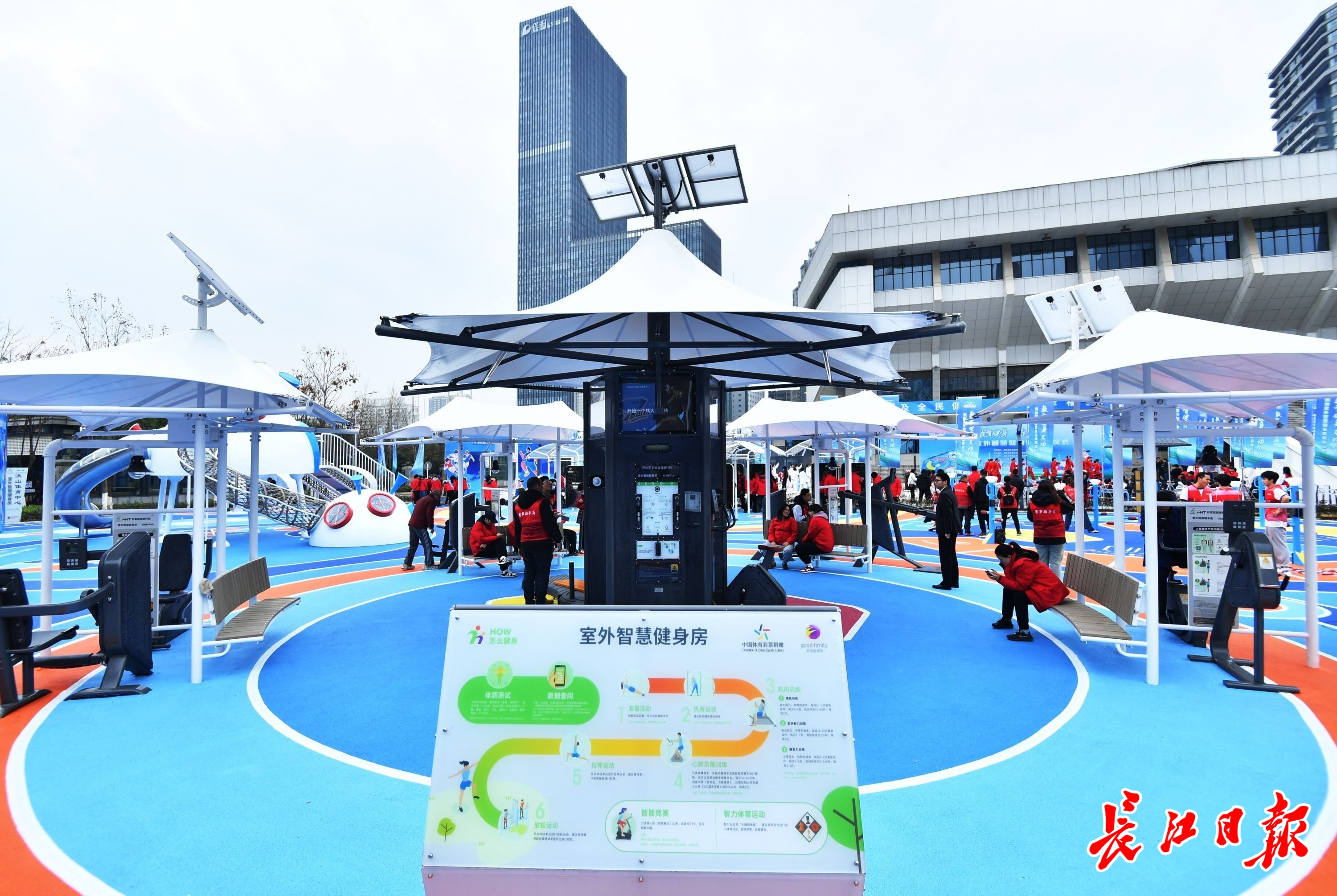 据介绍,作为全省首个全民“主动健康数智基础设施”,洪山体育中心室外智慧健身房通过绿色概念主题和数字技术手段,将数字化运动健康基础设施有机嵌入体育场馆的户外绿地空间,融合人工智能、物联网、云计算、大数据等技术,结合13项身体能力测试加14项循环心肺力量训练,针对不同身体部位、肌群进行个性化科学健身方案,并配备在线健身视频指导。人们既可以现场组团健身竞赛,也可以跟不同地区的朋友开展线上跨区域竞赛,使得全民健身成为一种新的生活方式和社交活动。