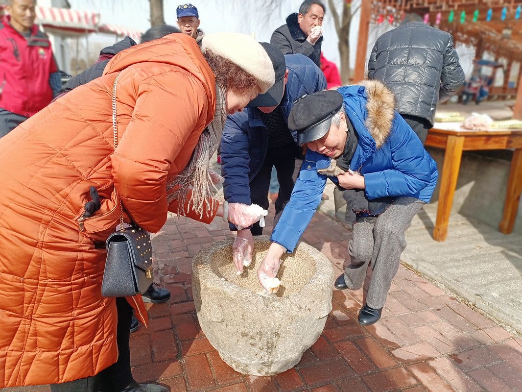 新洲区花朝河湾打糍粑民俗活动。景区供图