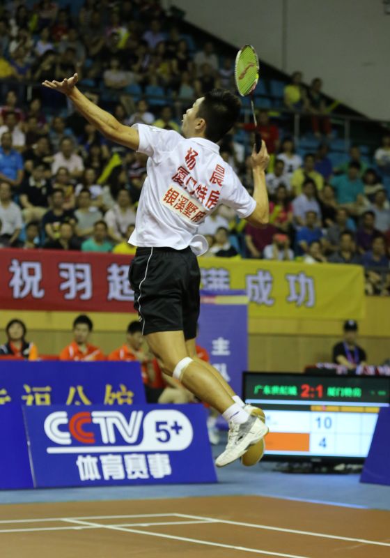 杨晨在2015年中国羽毛球超级联赛中比赛(资料图)。受访者供图