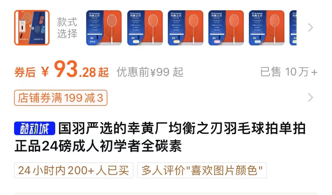 杨晨的羽毛球拍在电商平台销售火爆。张金玉 摄