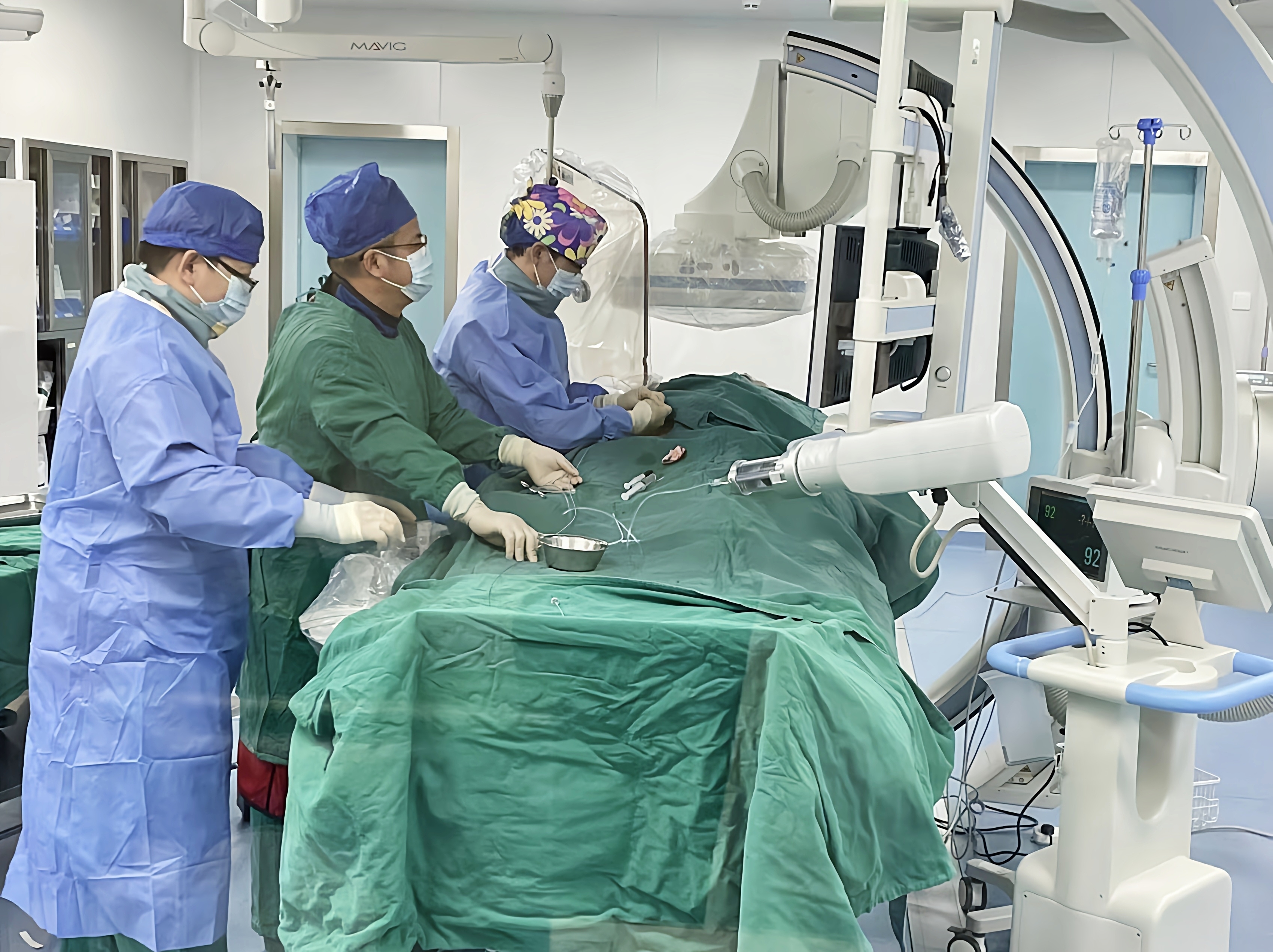 “双侧肺动脉主干栓塞,非常罕见,很危急!立即启动多学科会诊机制。”胡芬主任介绍,医院介入科、影像科、超声科、检验科、心血管内科等科室专家第一时间到达现场急会诊,研判病情;同时急请武汉协和医院介入科卢浩浩医师来现场会诊。