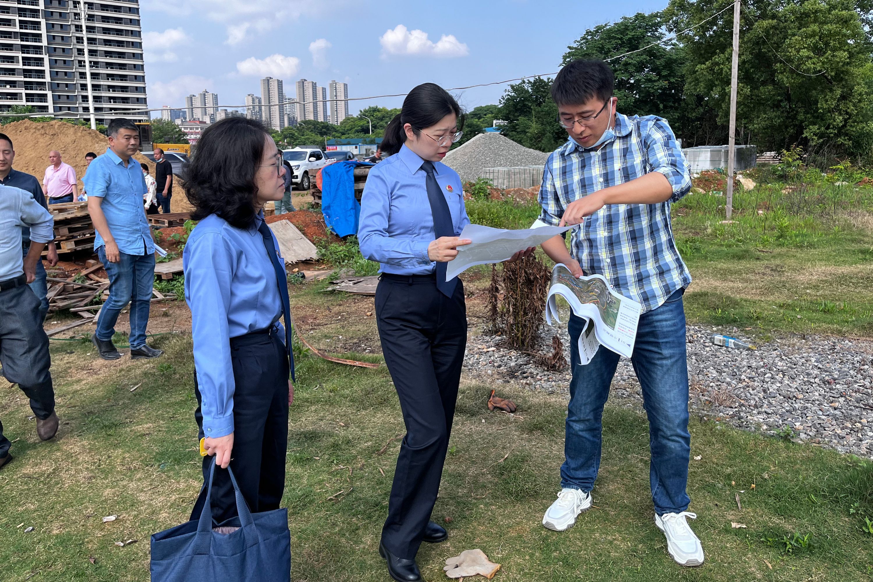 2023年6月,武汉经济技术开发区检察院检察官在后官湖开展公益诉讼调查工作。 通讯员周晶晶 供图