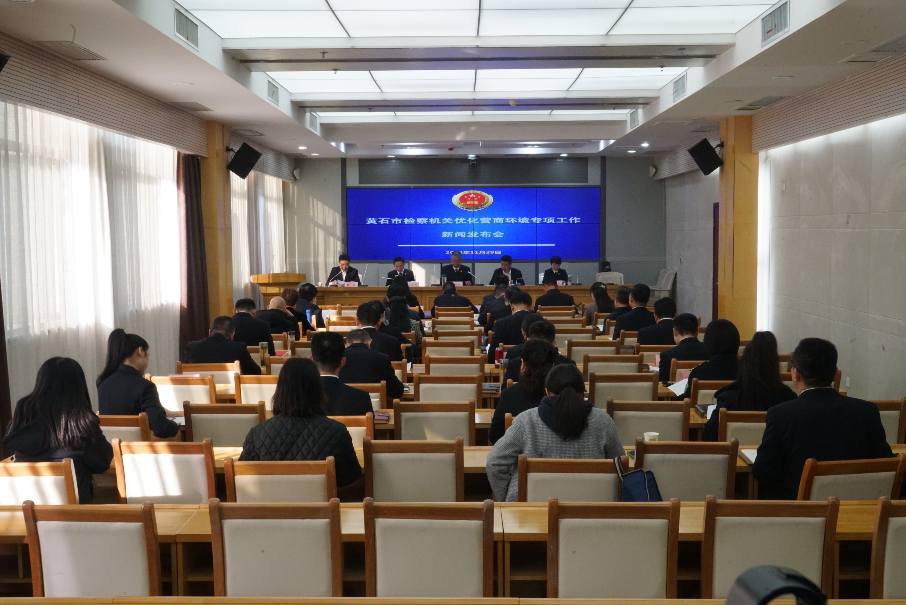 2023年11月28日,黄石市检察院召开优化营商环境专项工作新闻发布会。 通讯员蔡明仪 摄